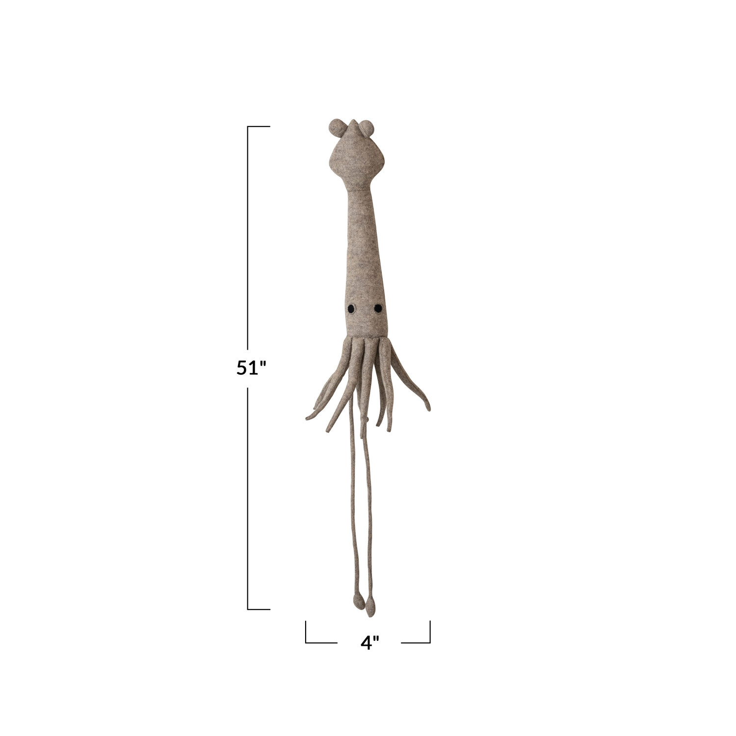 Catalog Name: 4"W x 51"H Handmade Wool Felt Squid Wall Décor, Grey & Black