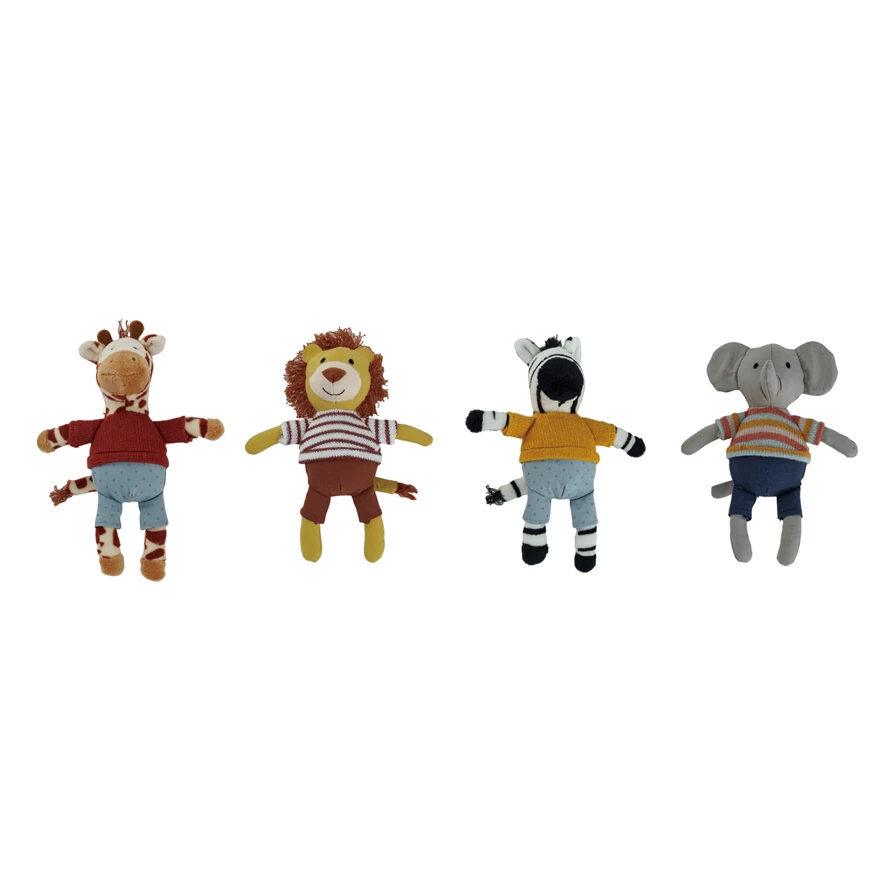 Catalog Name: 6-1/2"L x 5"W x 2"H Plush Animal in Clothes, Multi Color, 4 Styles