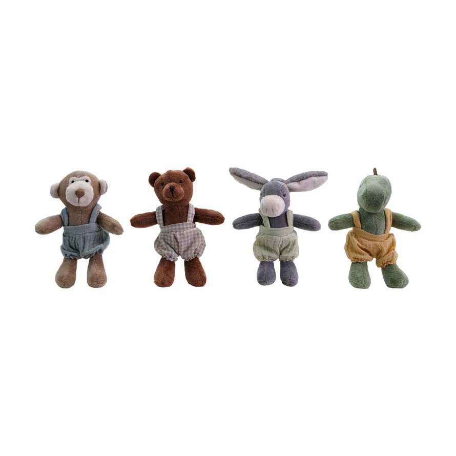 Catalog Name: 5"L x 6-1/2"H Plush Animal in Cotton Overalls, Multi Color, 4 Styles