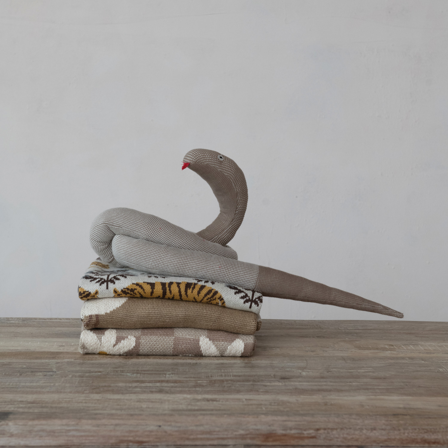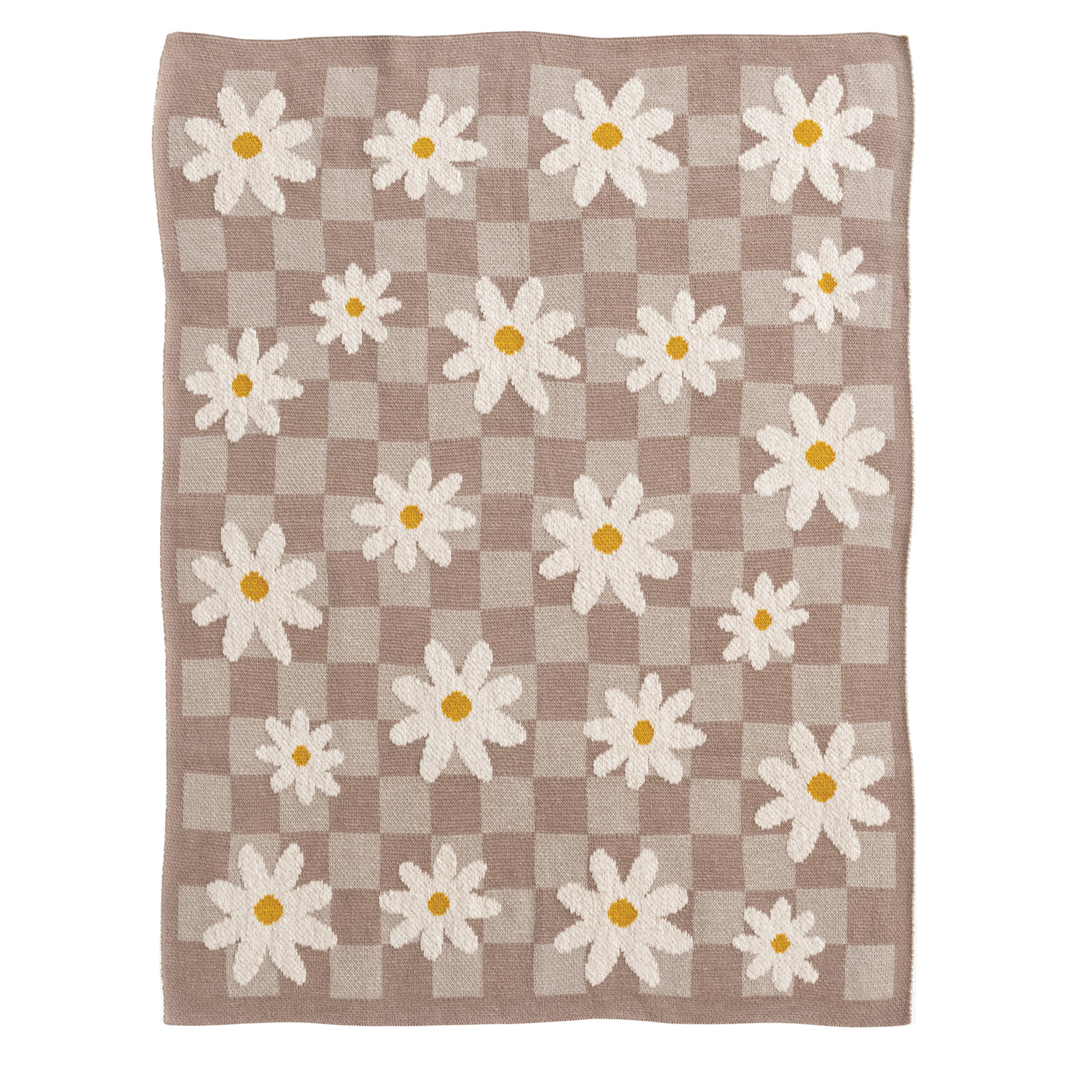 Cotton Knit Baby Blanket w/ Daisies & Check Pattern