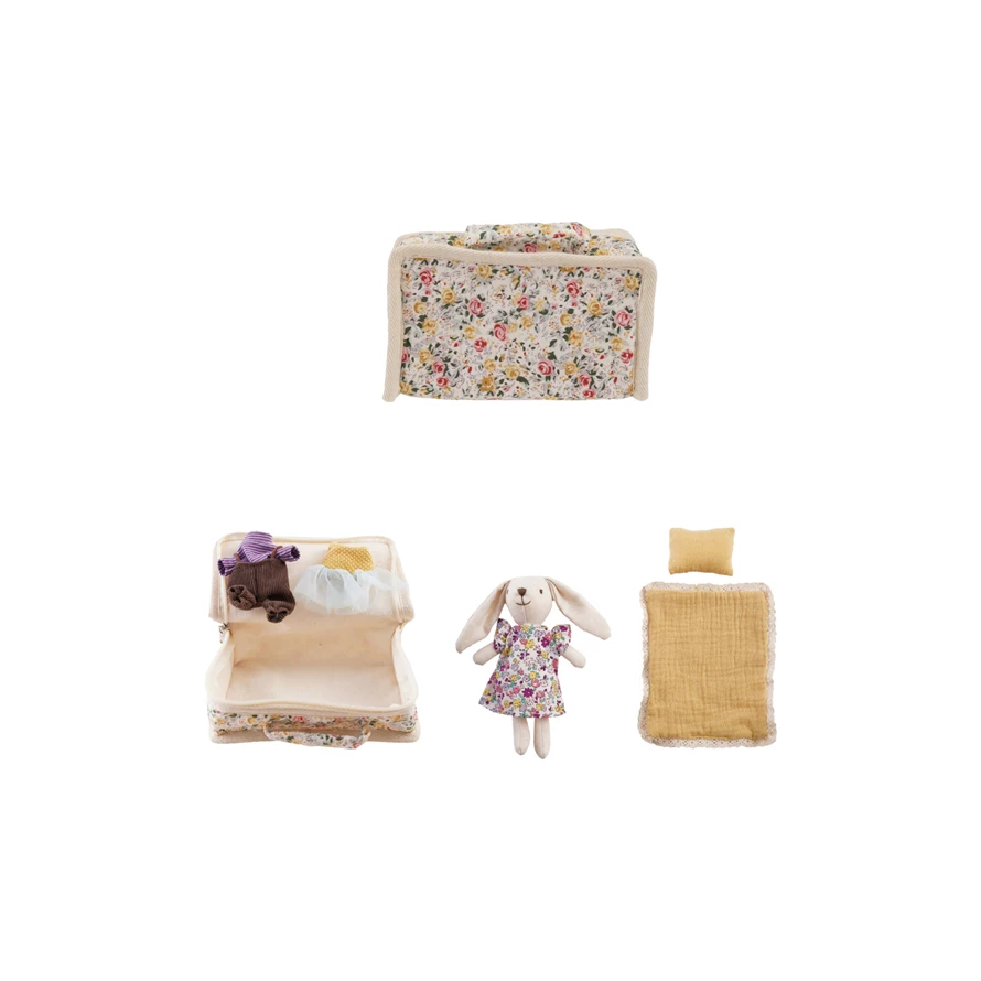 7"L x 4"W x 1-1/2"H Fabric Zip Suitcase Bed with Plush Bunny & Outfits, Set of 6