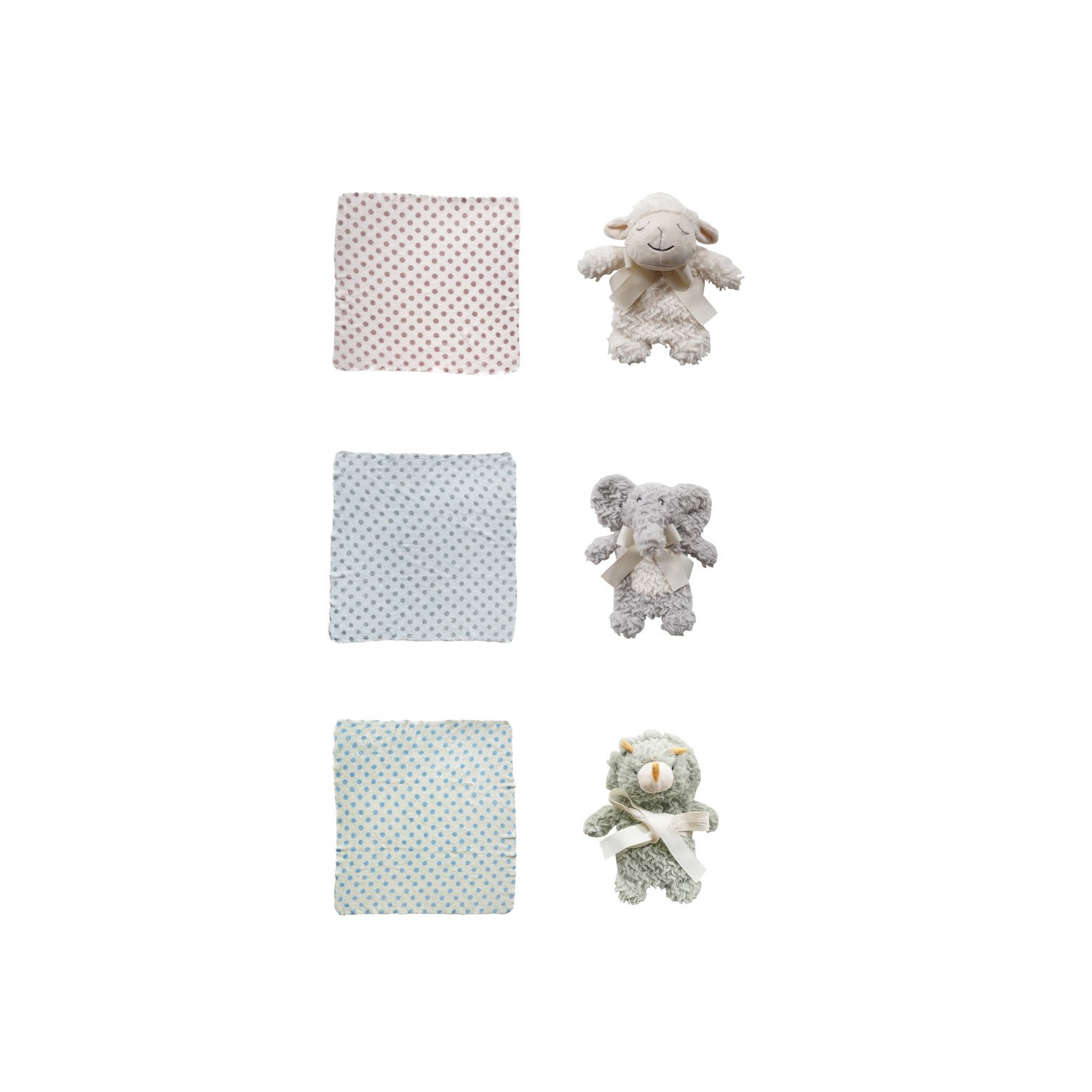 Plush Animal with Polka Dot Blanket, Set of 2 Tied with Cotton Tape, 3 Styles