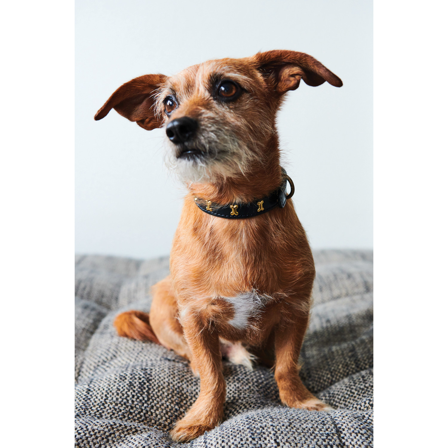Catalog Name: 15-1/2"L x 1"W Leather Dog Collar w/ Brass Bones & Metal Buckle, 6 Colors, Extra Small