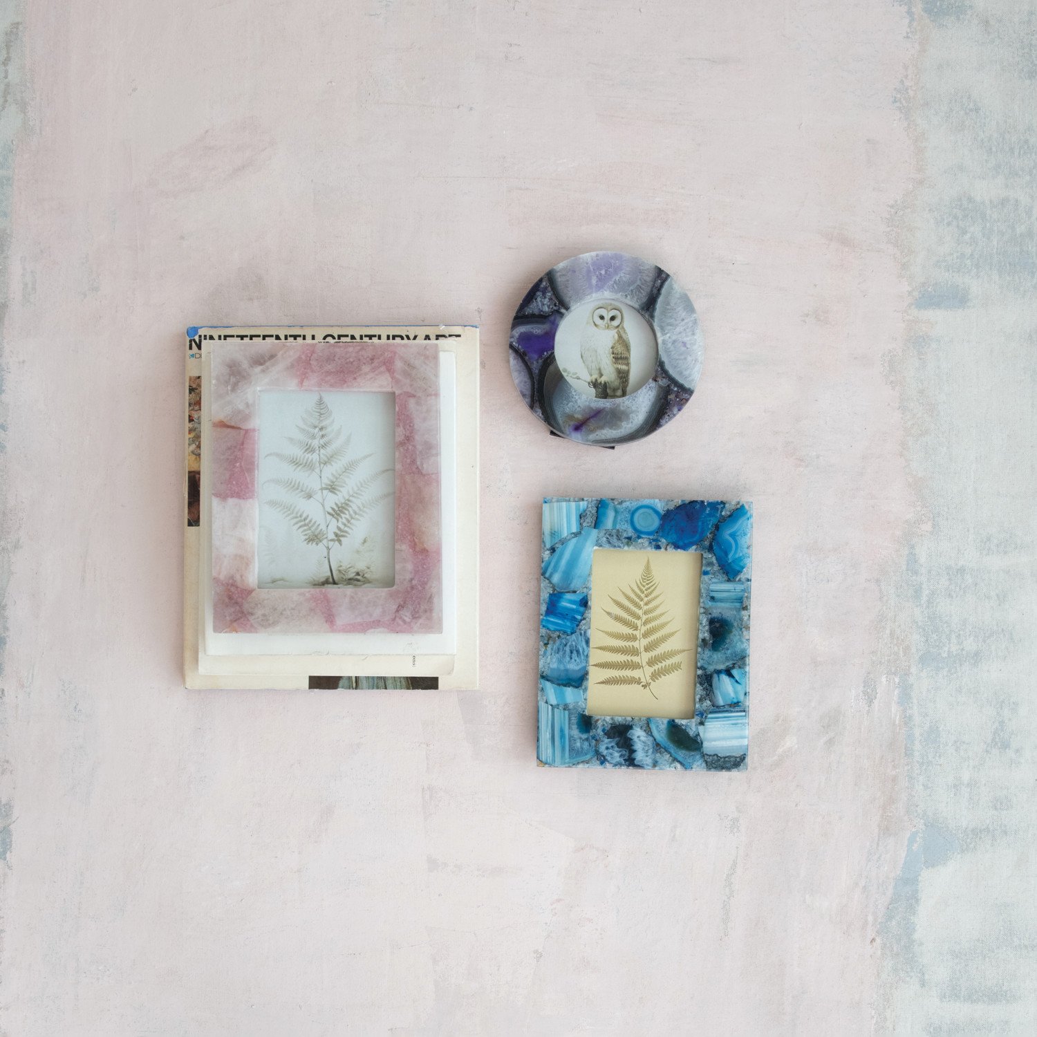 Catalog Name: 6-1/2" Round Agate Photo Frame, Purple (Holds 4" Photo) (Each One Will Vary)