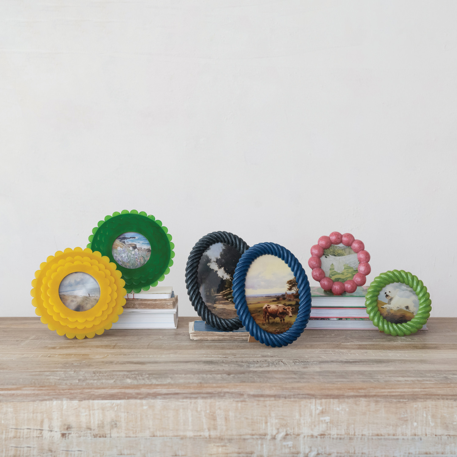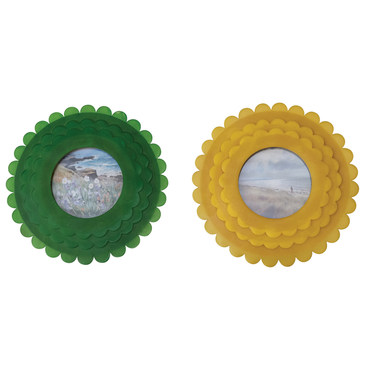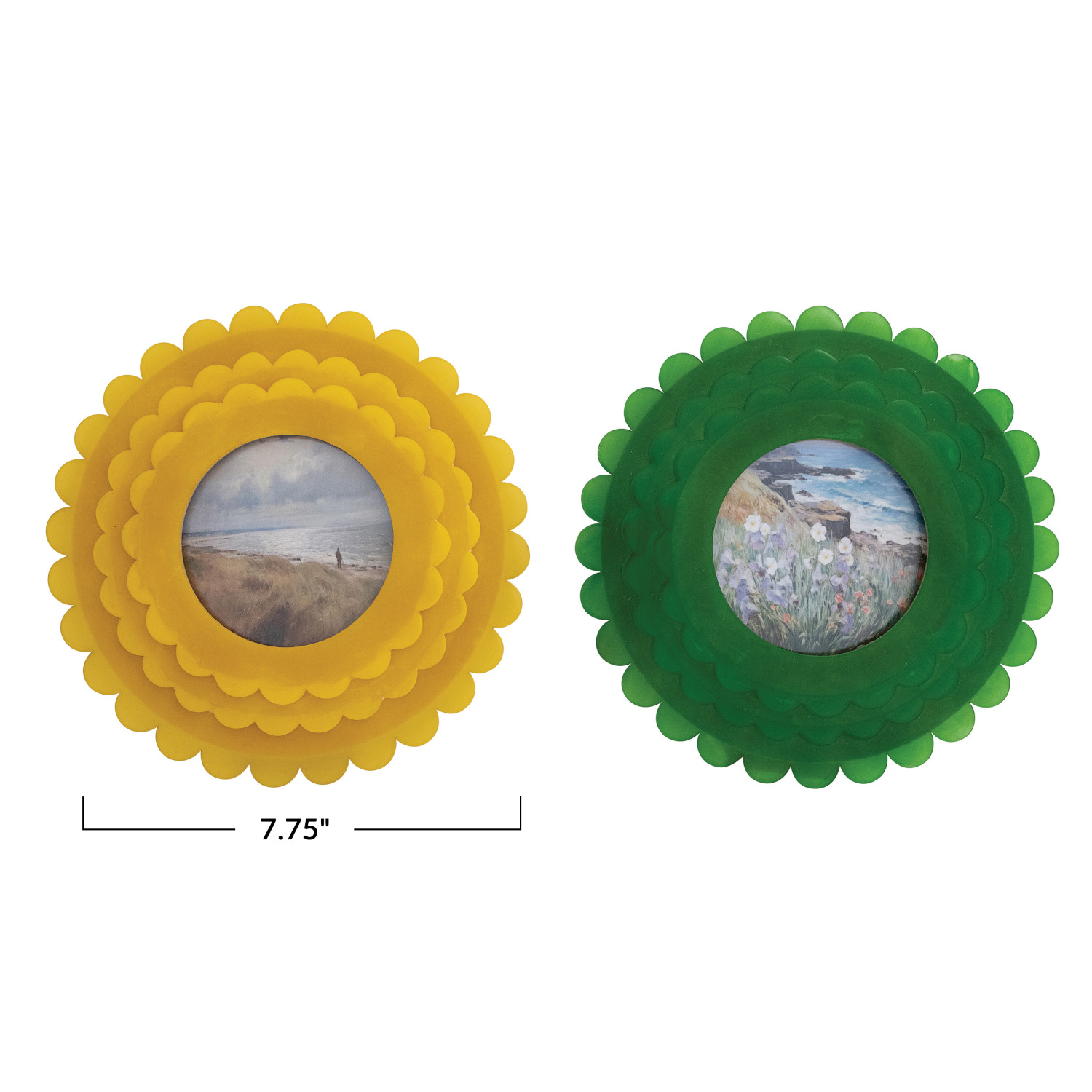 Catalog Name: 7-3/4" Round MDF & Resin Scalloped Photo Frame, 2 Colors (Holds 4" x 4" Photo)