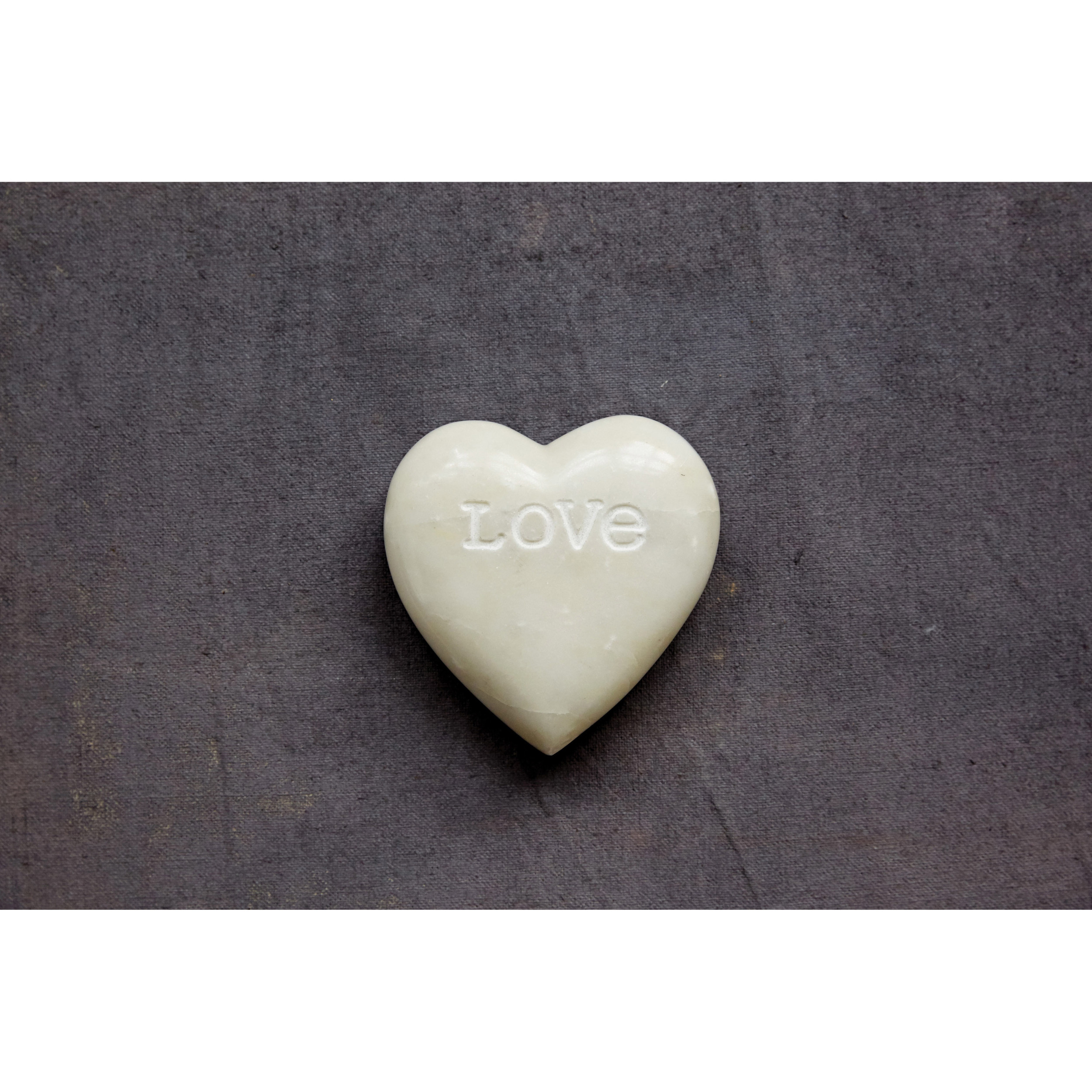 Catalog Name: 4"L Soapstone Heart w/ Engraved "Love", White (Each One Will Vary)