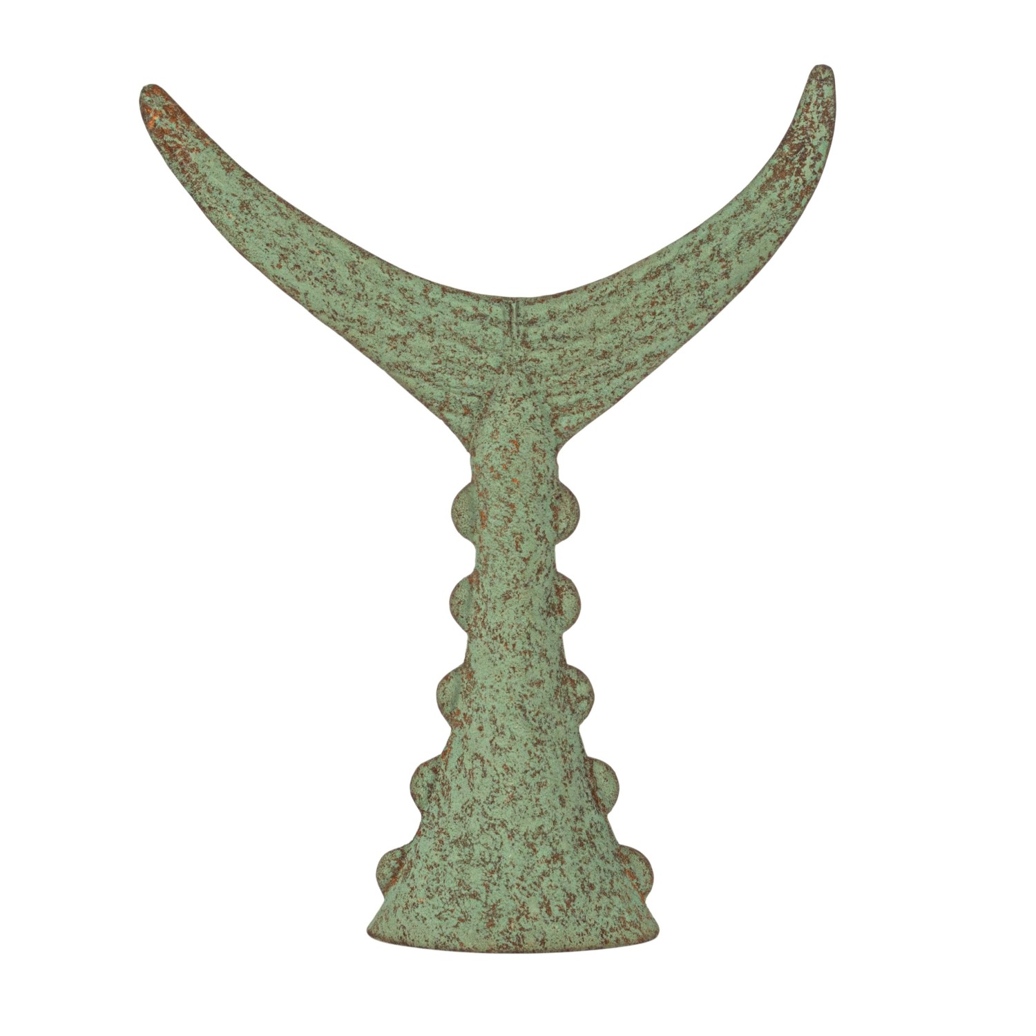This accent decor is a must-have for sea lovers or fish enthusiasts. The accent decor is made of metal, a material that is strong and long-lasting. The accent decor has a tuna tail shape that is realistic and detailed. The tail has a distressed aqua finish that gives it a vintage and rustic look. The tail has a hook on the back that makes it easy to hang on the wall. The tail can also be displayed on a shelf or table as a centerpiece or a conversation piece. The accent decor is suitable for any style, from coastal to nautical. The accent decor is also versatile and can be used in any room, such as the living room, bedroom, bathroom, or office. The accent decor is easy to clean and maintain, and it will make the space look more lively and charming. Create a seaside vibe or show off their fishing passion, this accent decor will help them do it with style and flair.