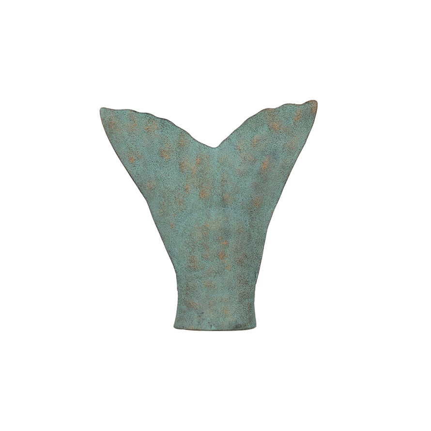 Catalog Name: 10"L x 8-1/2"H Metal Trout Tail Wall Décor, Heavily Distressed Aqua Finish