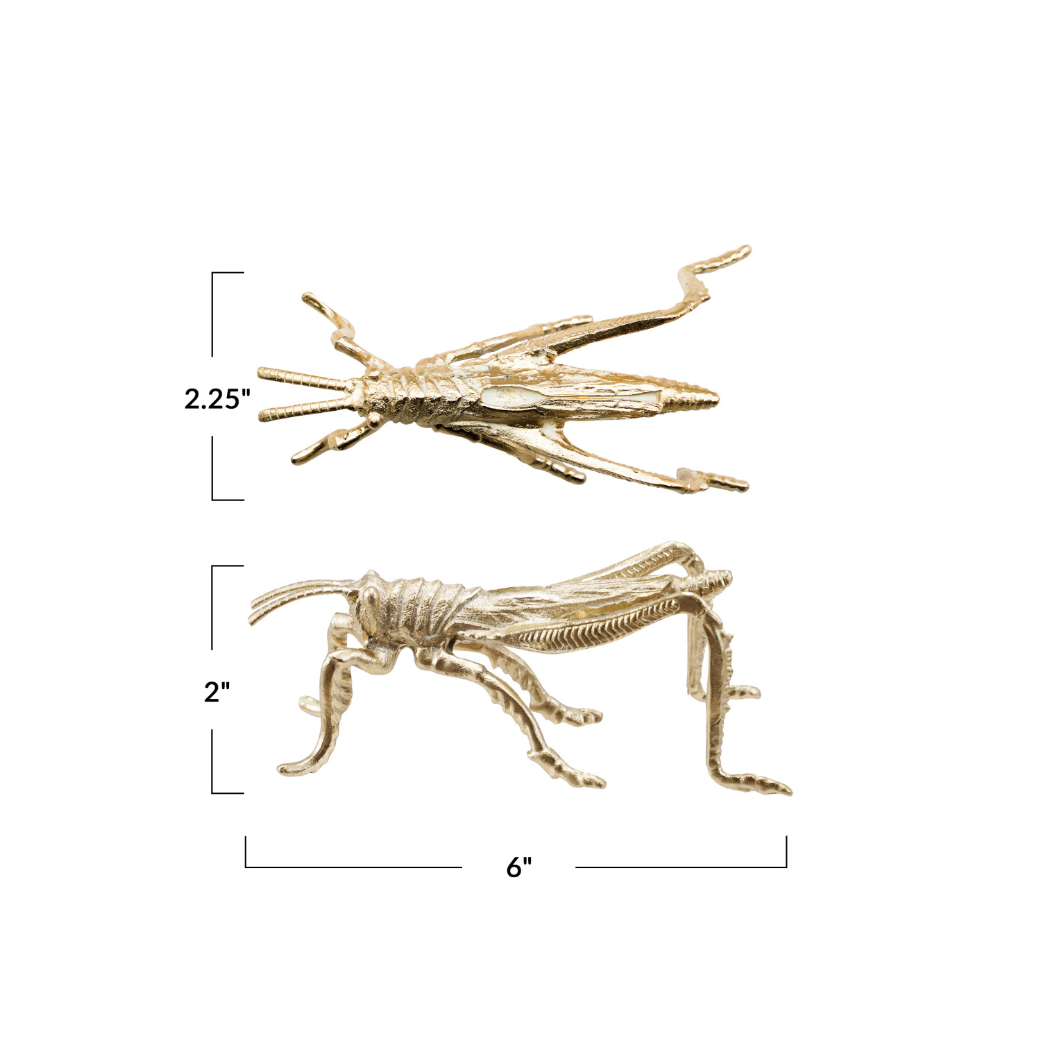 Catalog Name: 6"L x 2-1/4"W x 2"H Pewter Grasshopper, Gold Finish