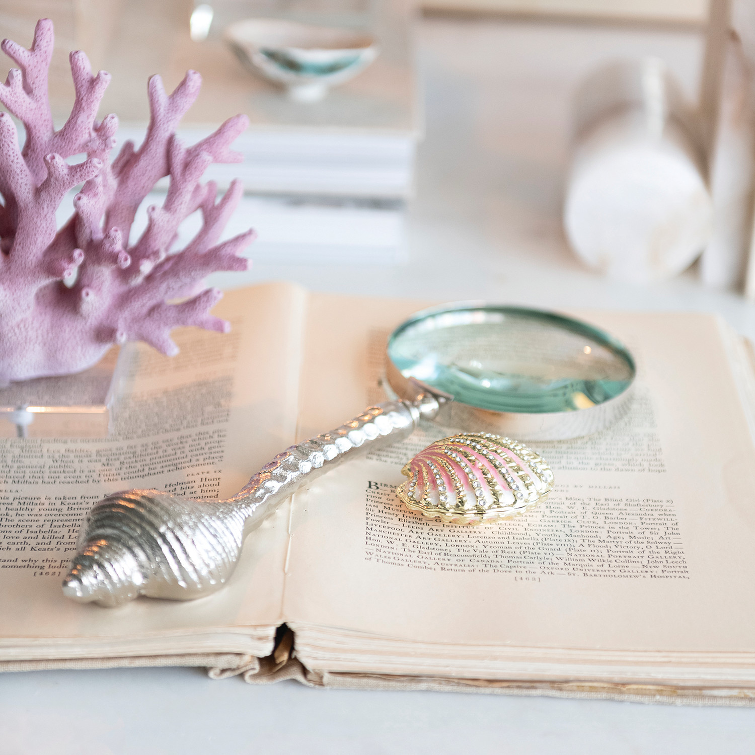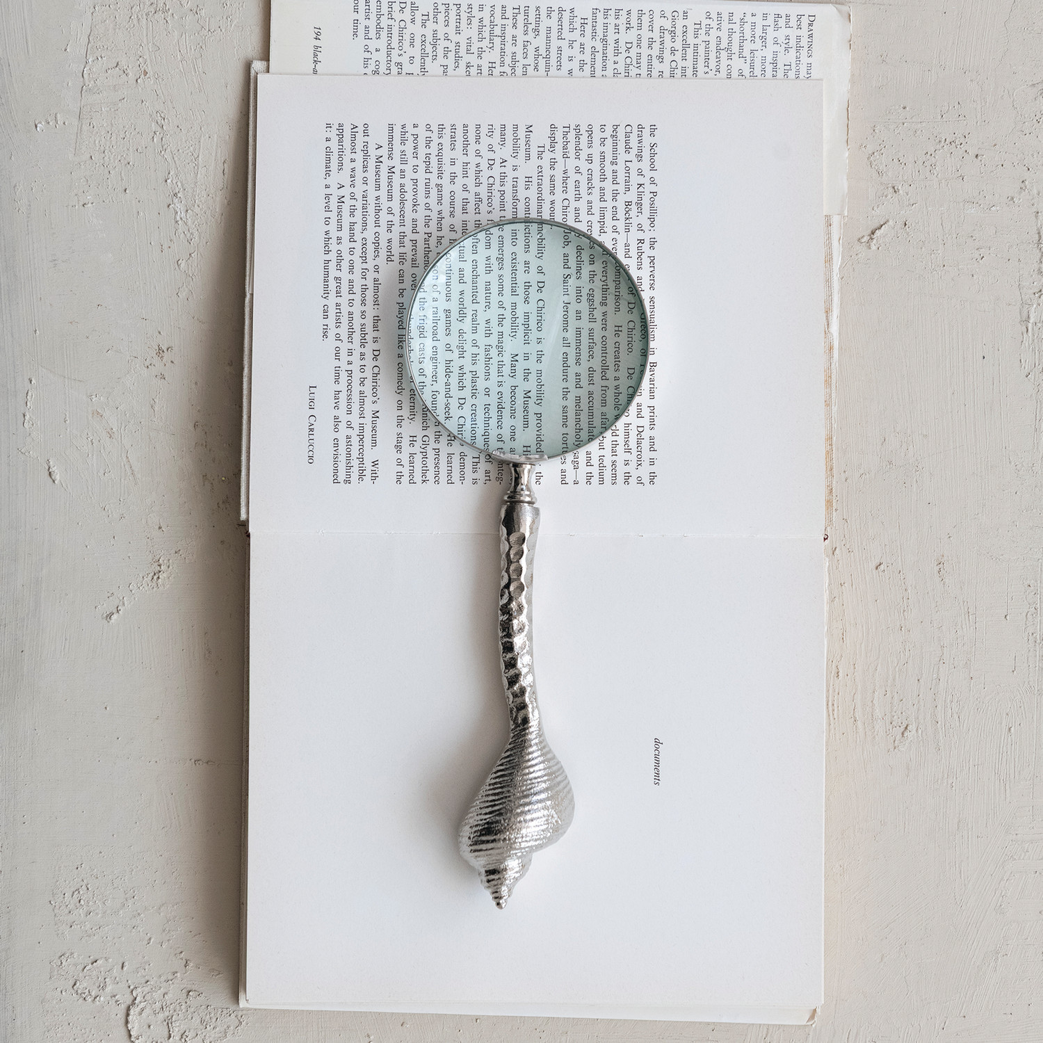 Cast Aluminum Magnifying Glass with Shell Shaped Handle