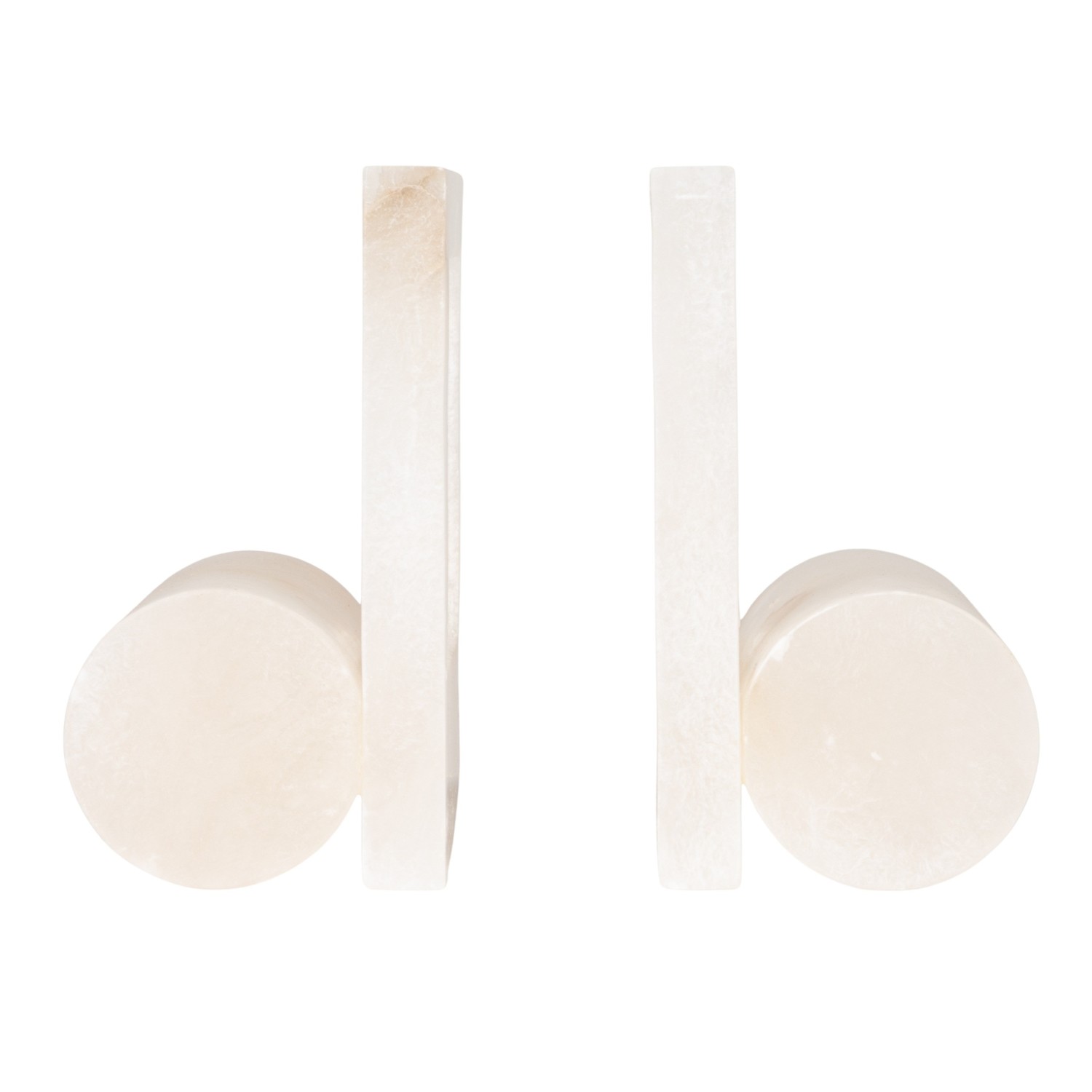 Catalog Name: 5"L x 3-1/4"W x 6"H Alabaster Bookends w/ Cut-Outs, Translucent White, Set of 2 (Each One Will Vary)