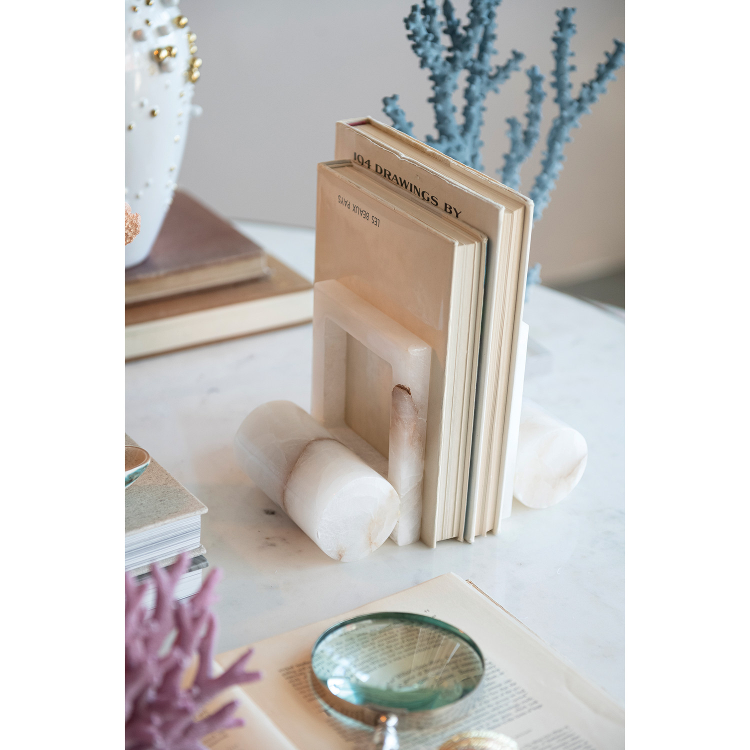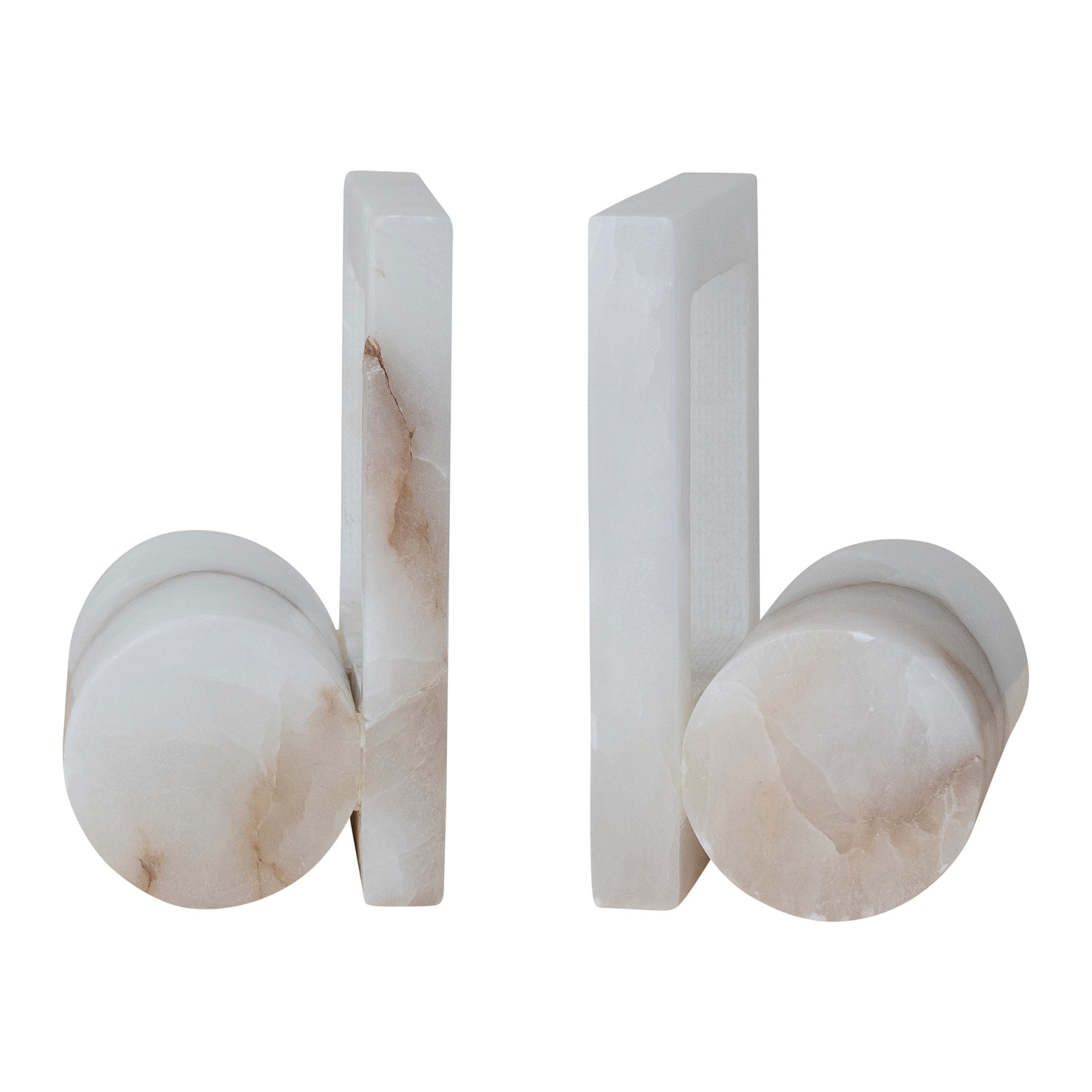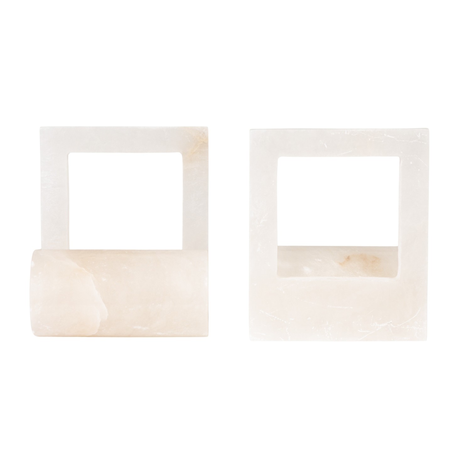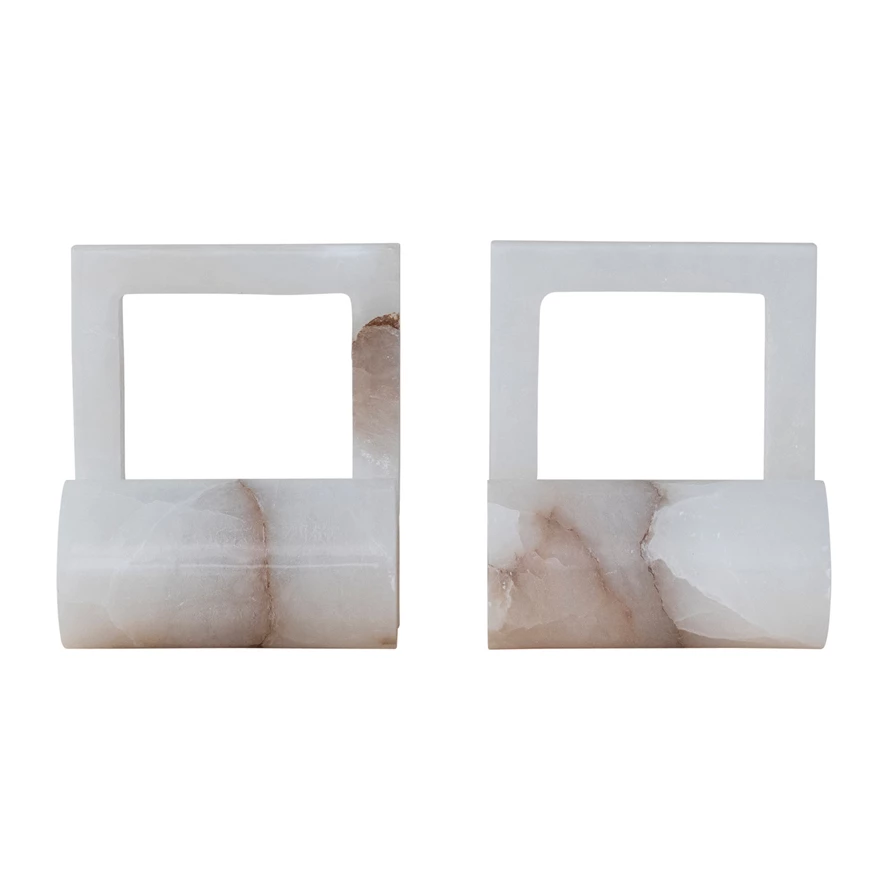 Alabaster Bookends with Cut-Outs, Set of 2 (Each One Will Vary)
