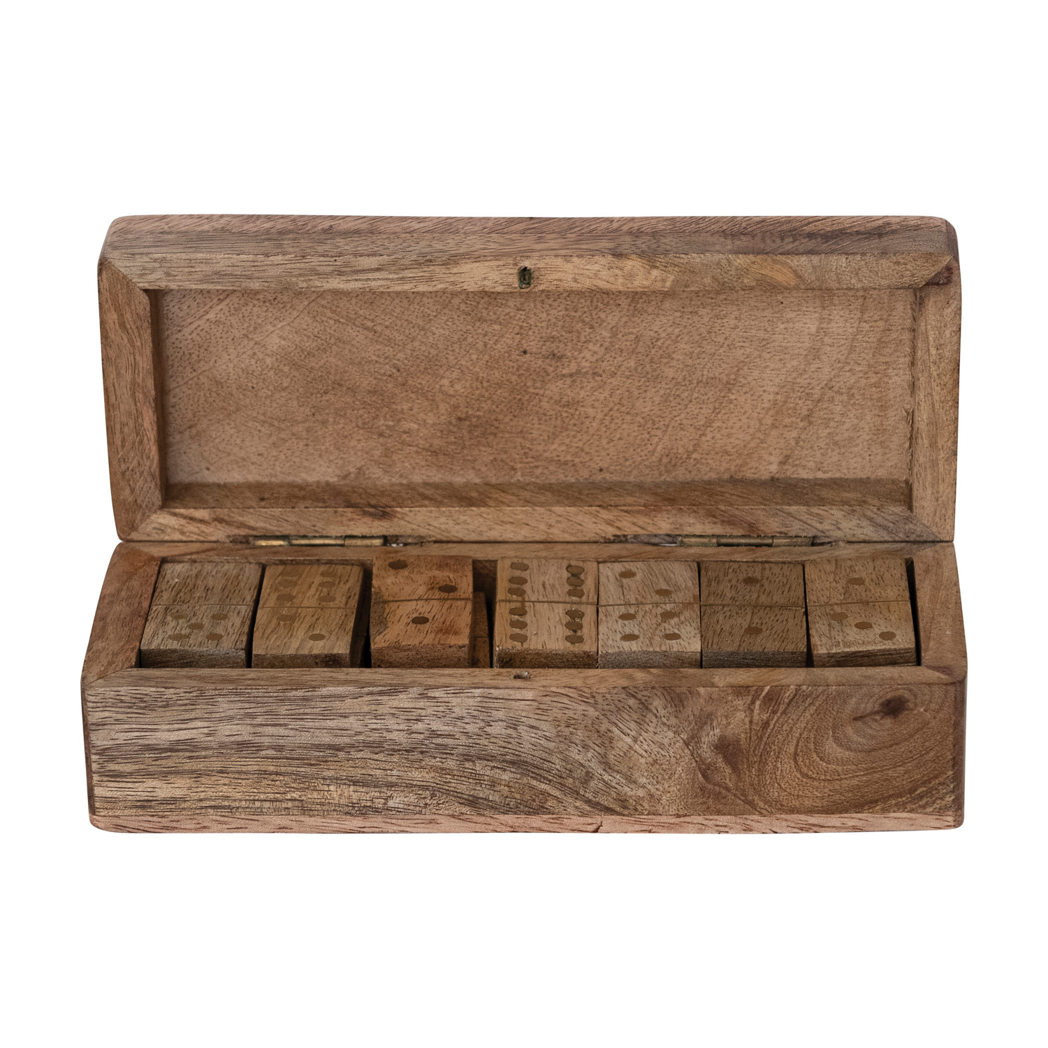 Handmade Mango Wood & Inlaid Brass Dominoes in Mango Wood Box, Natural, Set of 29