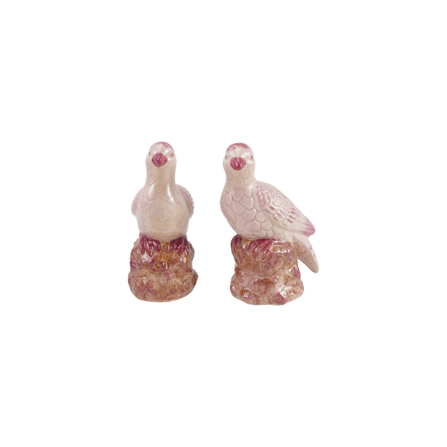 Catalog Name: 5-1/2"L x 3-1/4"W x 6-1/4"H Hand-Painted Stoneware Bird, Reactive Glaze, Pink, 2 Styles (Each One Will Vary)