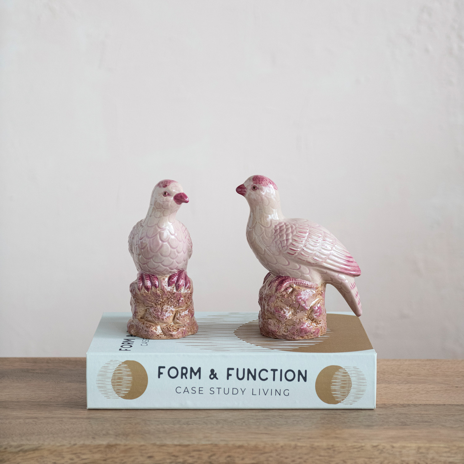 Hand-Painted Stoneware Bird, Pink, 2 Styles (Each One Will Vary)