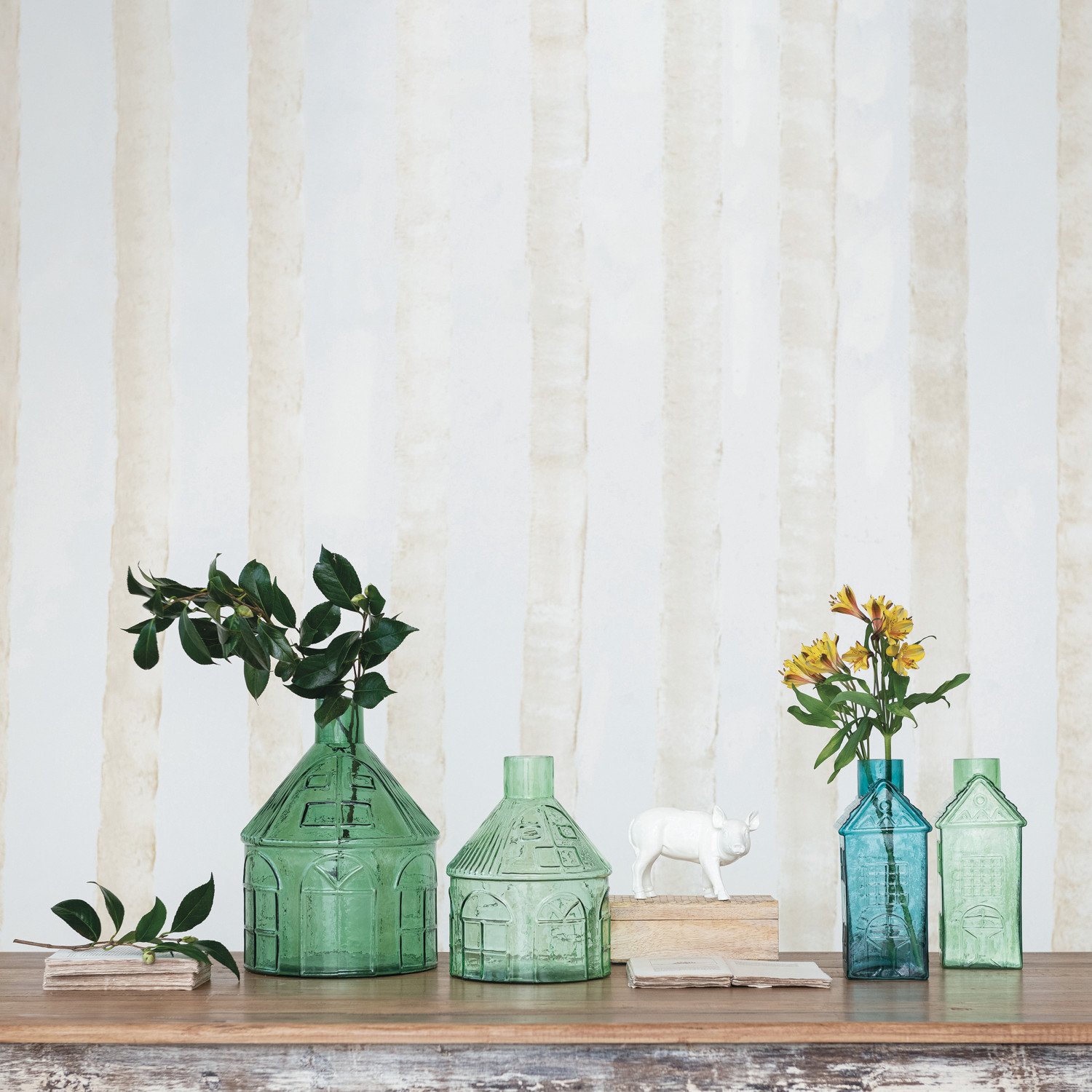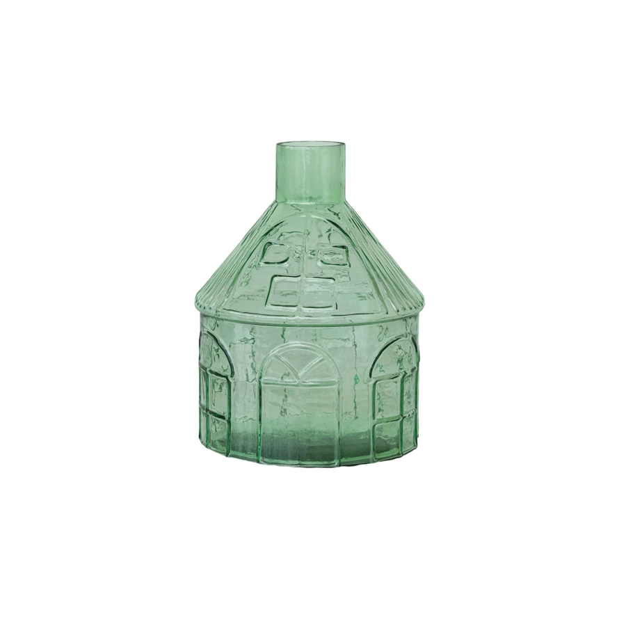 This Decorative Vase captures the imagination with its house-like form and vibrant green hue. Standing 11 inches tall and 8 inches round, it's a statement piece that invites nature into the home. Whether filled with lush foliage, colorful flowers, or left empty to admire its unique shape, this glass vase is a delightful addition to any space seeking a blend of whimsy and elegance. Its round base ensures stability, while the glass material offers both beauty and practicality, making it a cherished item for those who appreciate a touch of the eclectic in their decor.