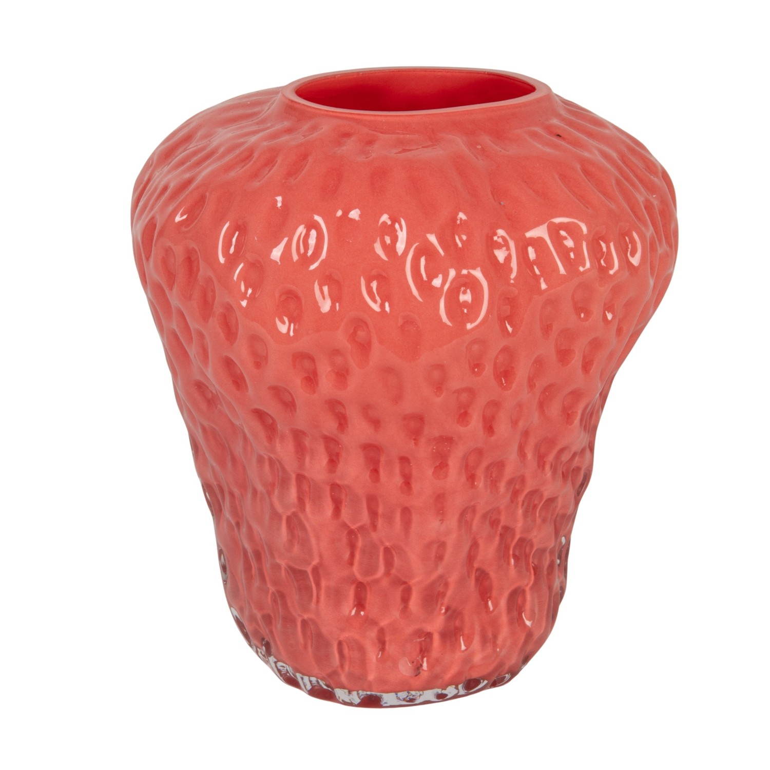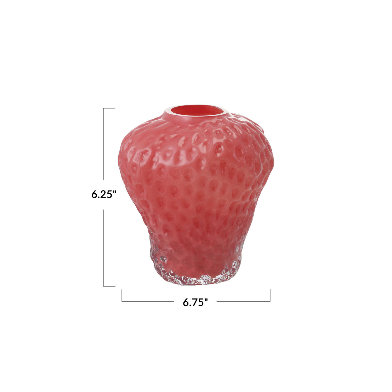 Catalog Name: 6-1/4" Round x 6-3/4"H Glass Strawberry Shaped Vase, Opaque Pink