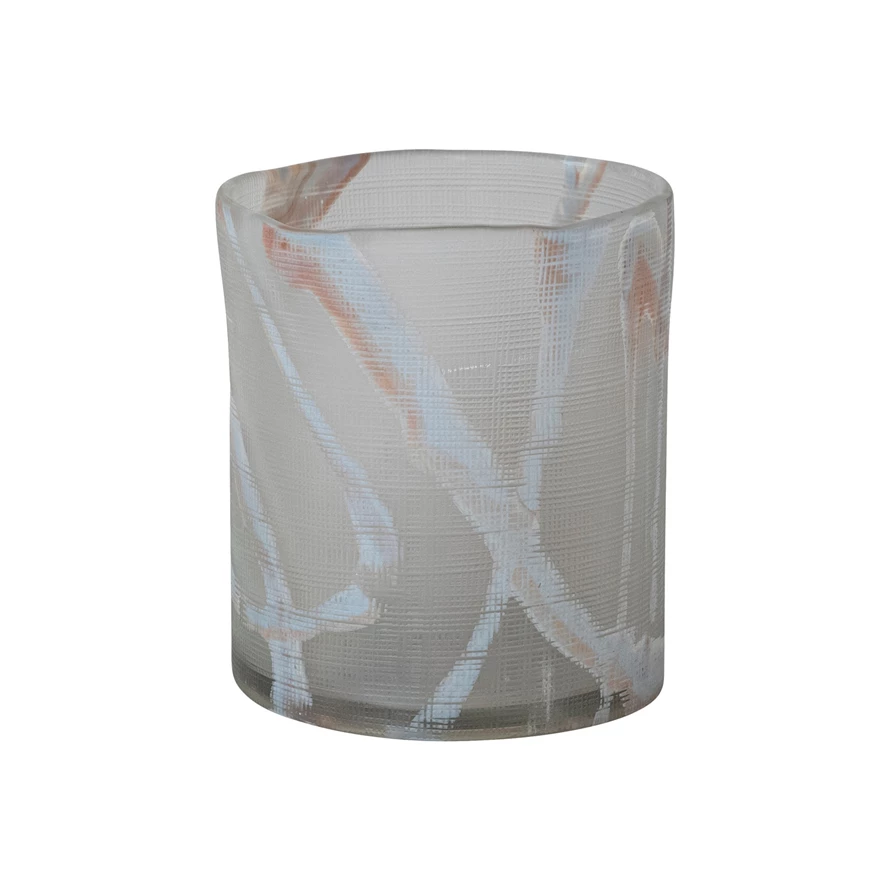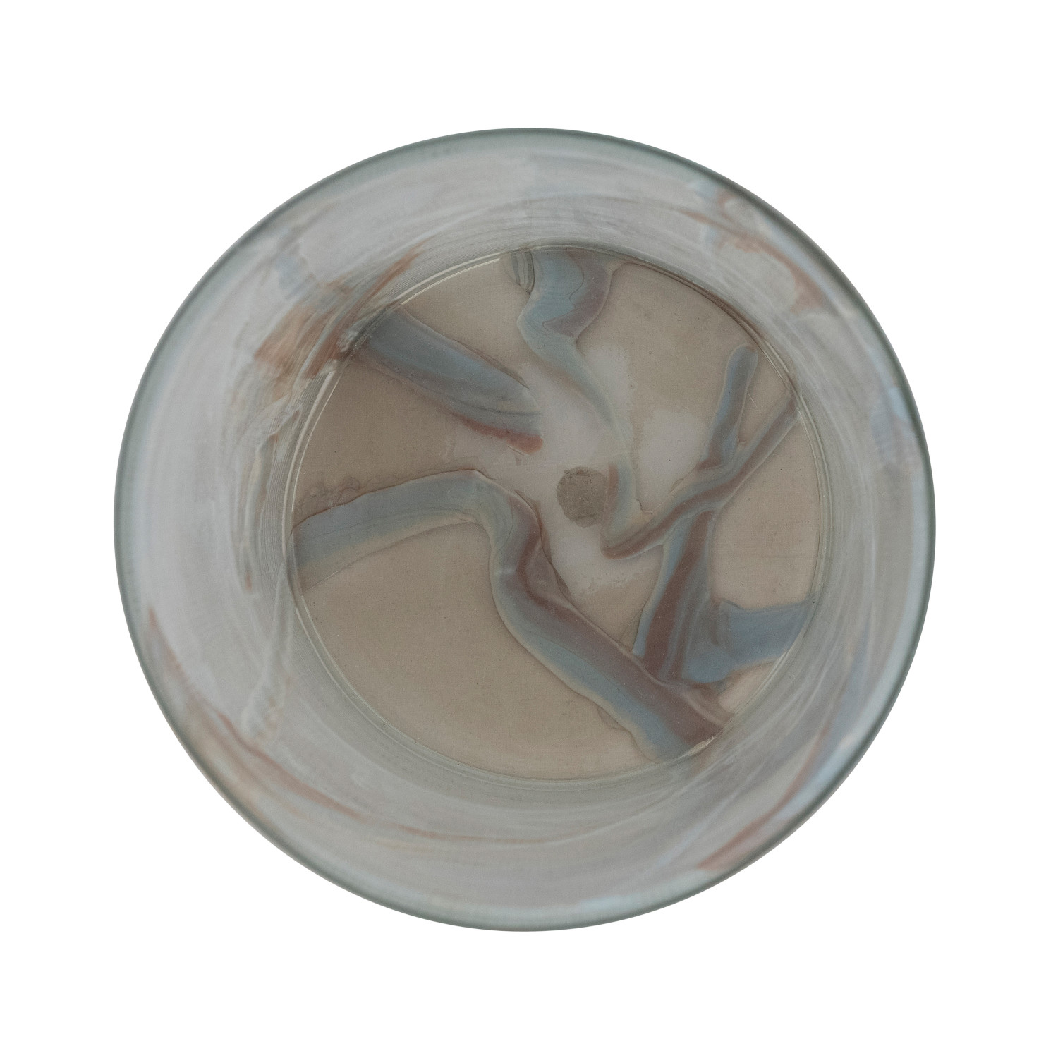 7" Round x 8"H Textured Art Glass Candle Holder (Each One Will Vary)
