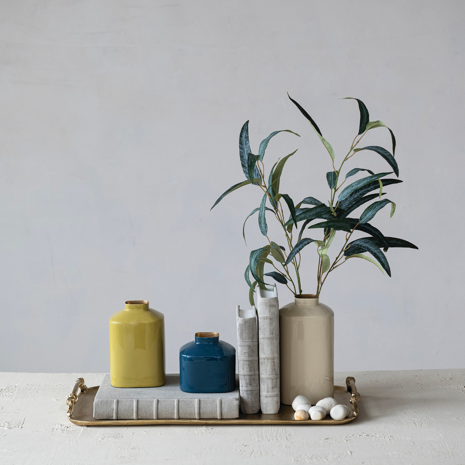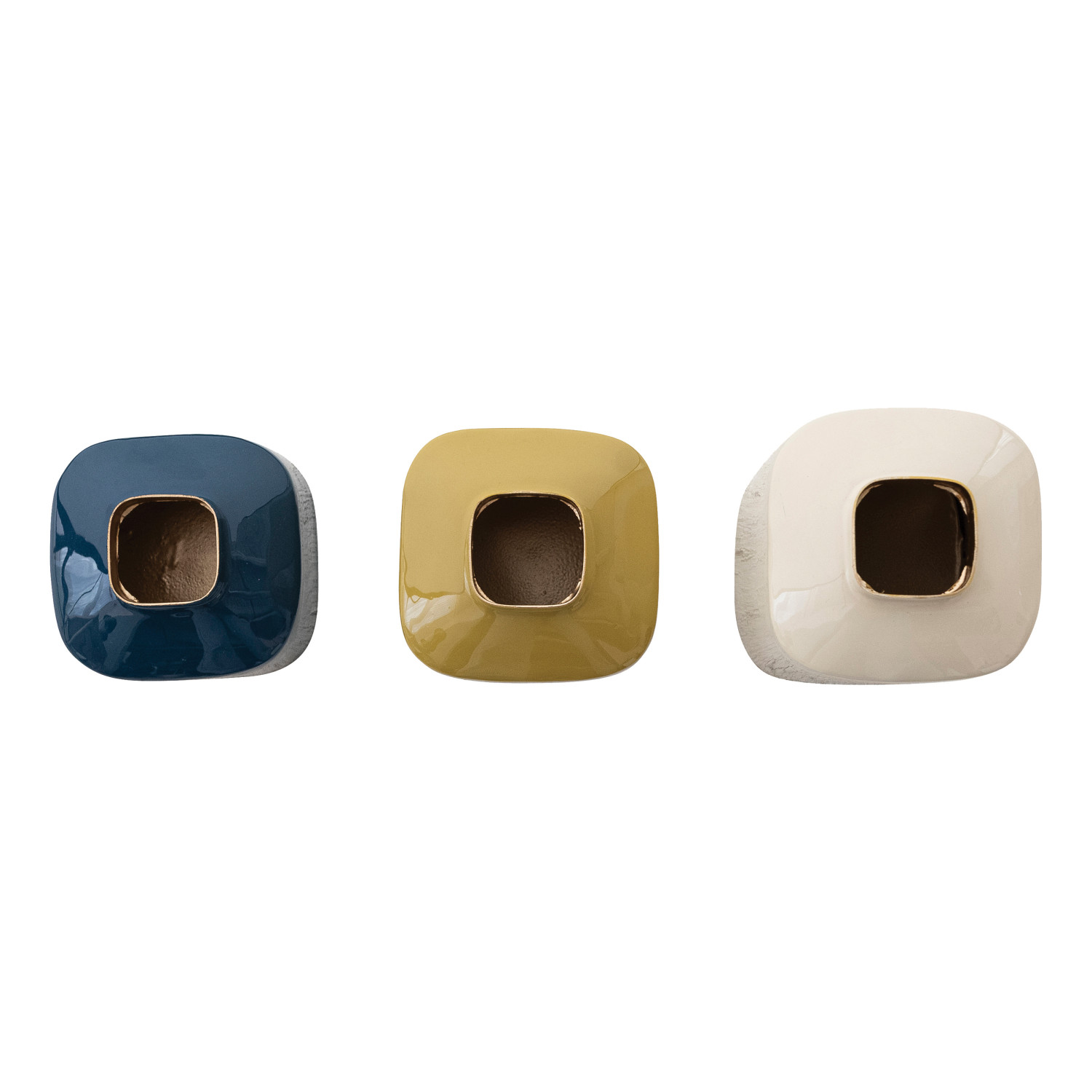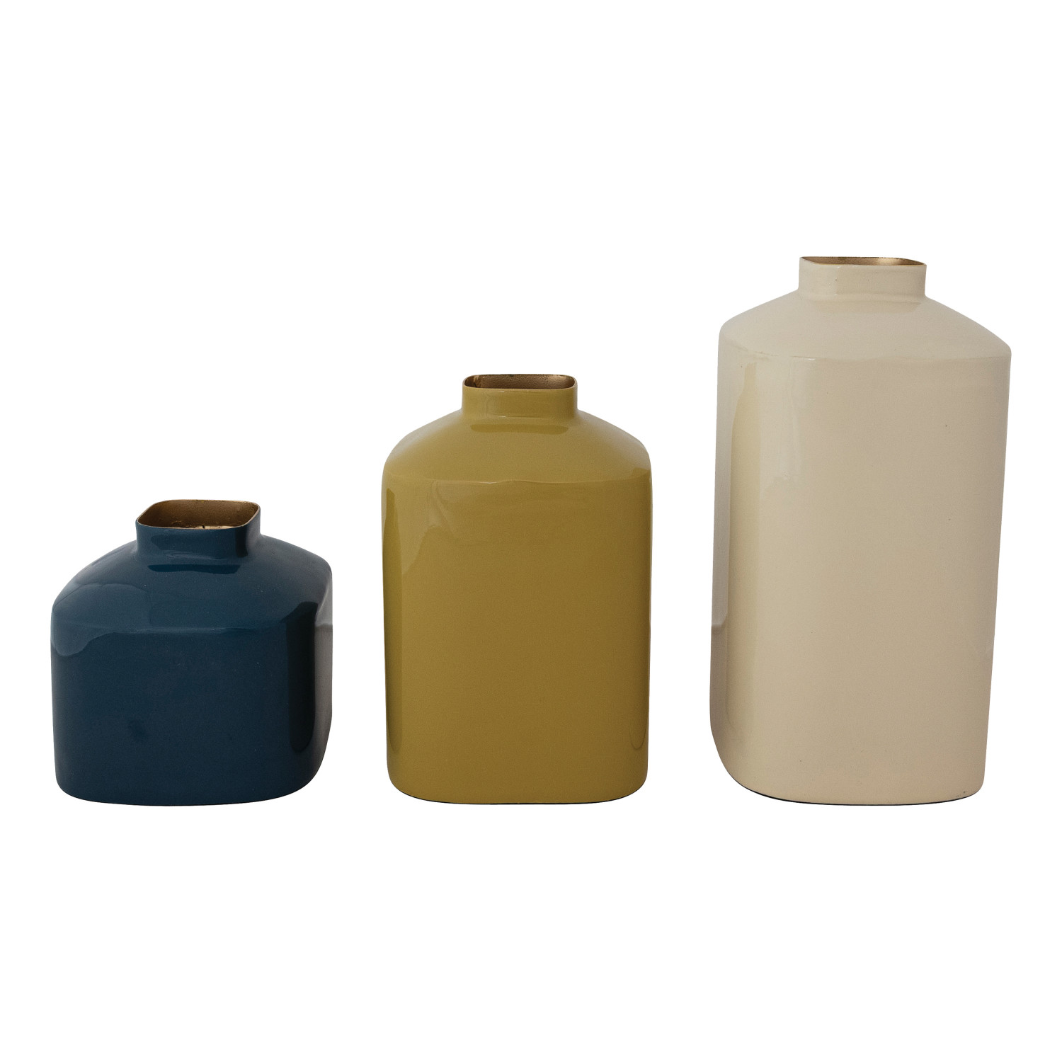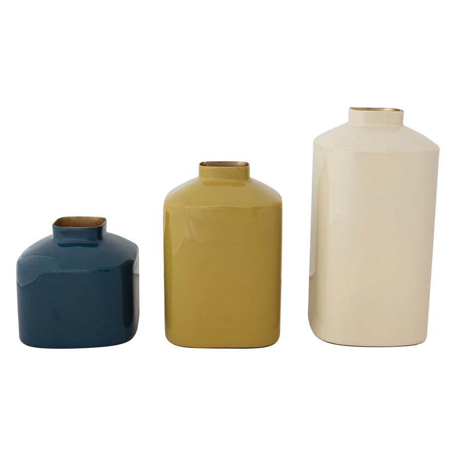 Catalog Name: 4" Square x 7-3/4"H, 4-1/4" Square x 6"H & 4" Square x 4"H Enameled Metal Vases, Multi Color, Set of 3