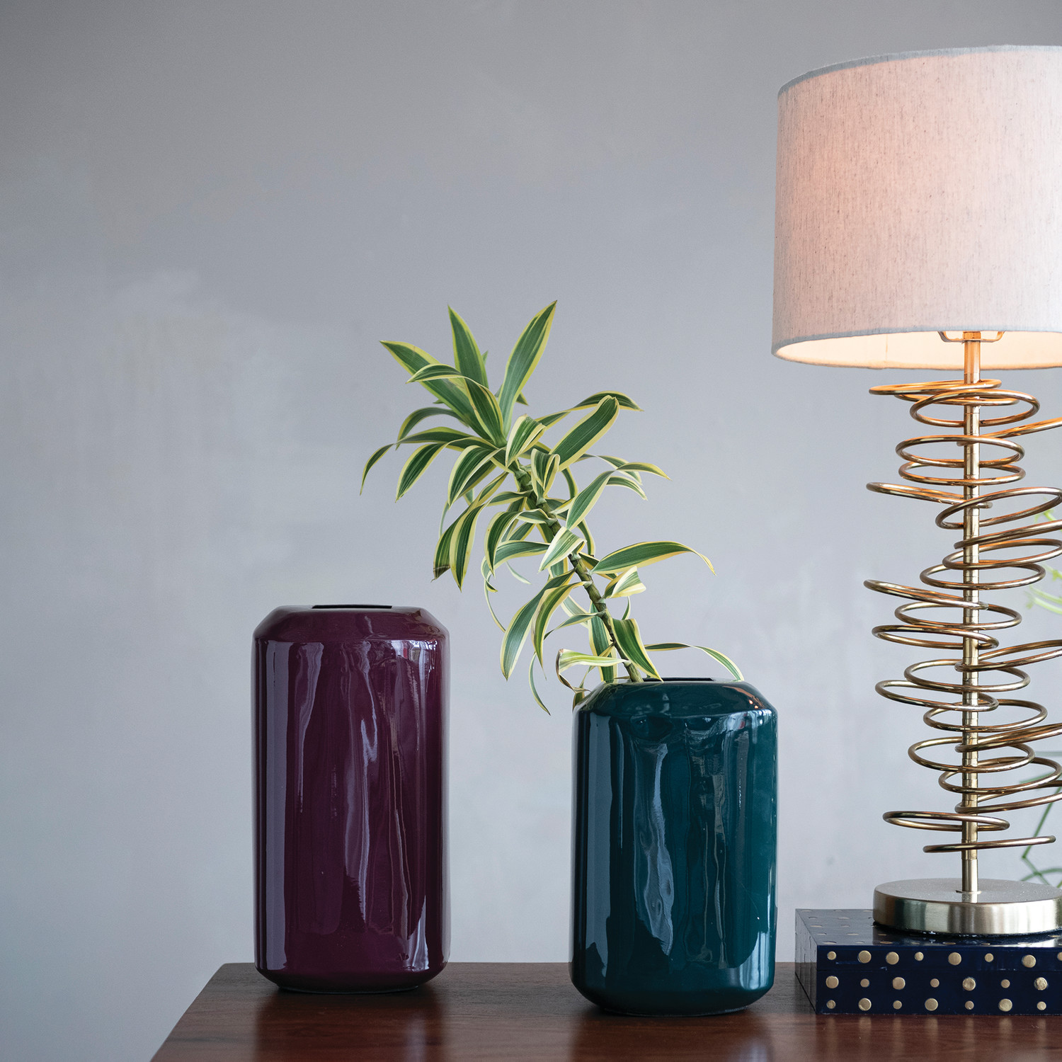 Catalog Name: 6-1/4" Square x 12"H Enameled Metal Vase, Burgundy