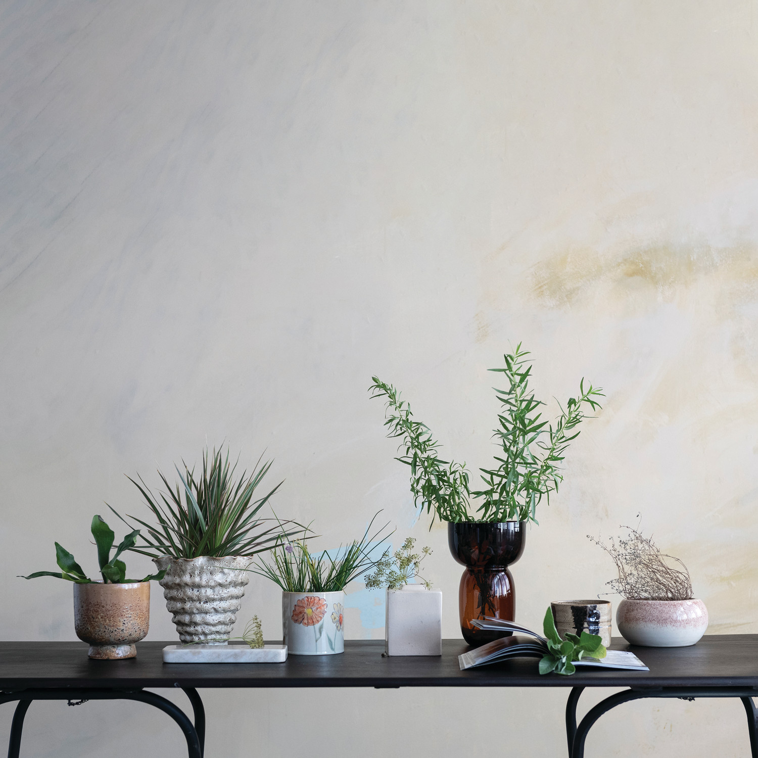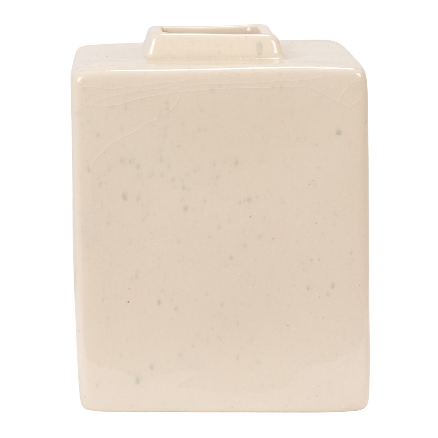 Catalog Name: 4-3/4" Square x 6"H Stoneware Vase, Reactive Crackle Glaze, Cream Color (Each One Will Vary)