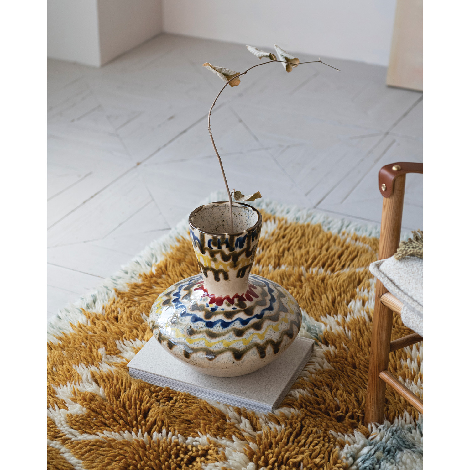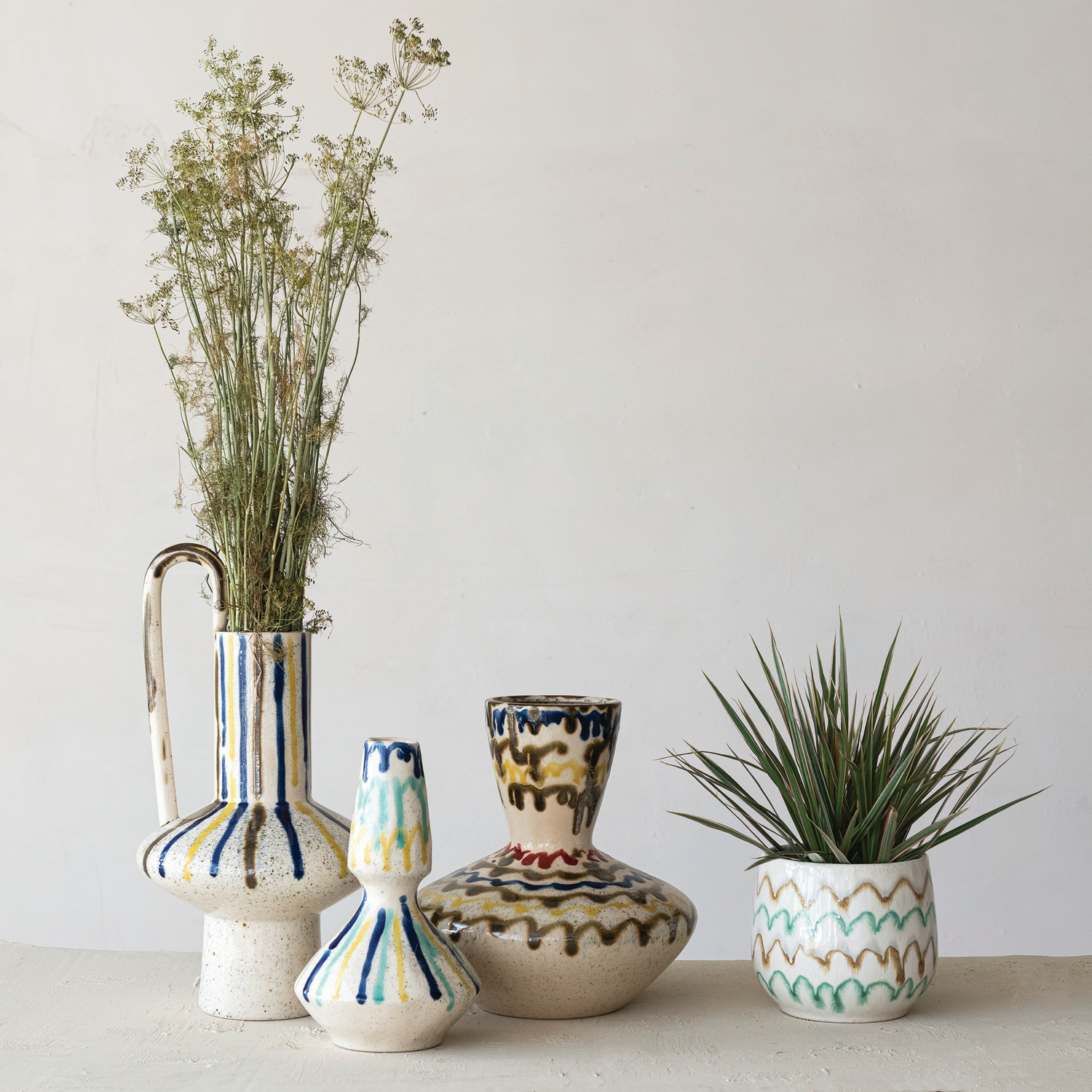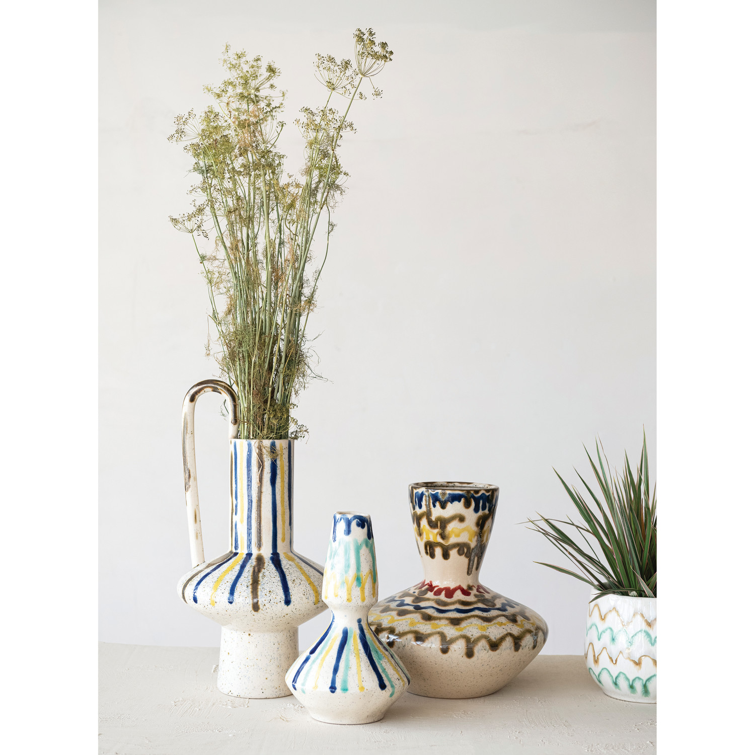 Hand-Painted Stoneware Vase, Reactive Crackle Glaze (Each One Will Vary)
