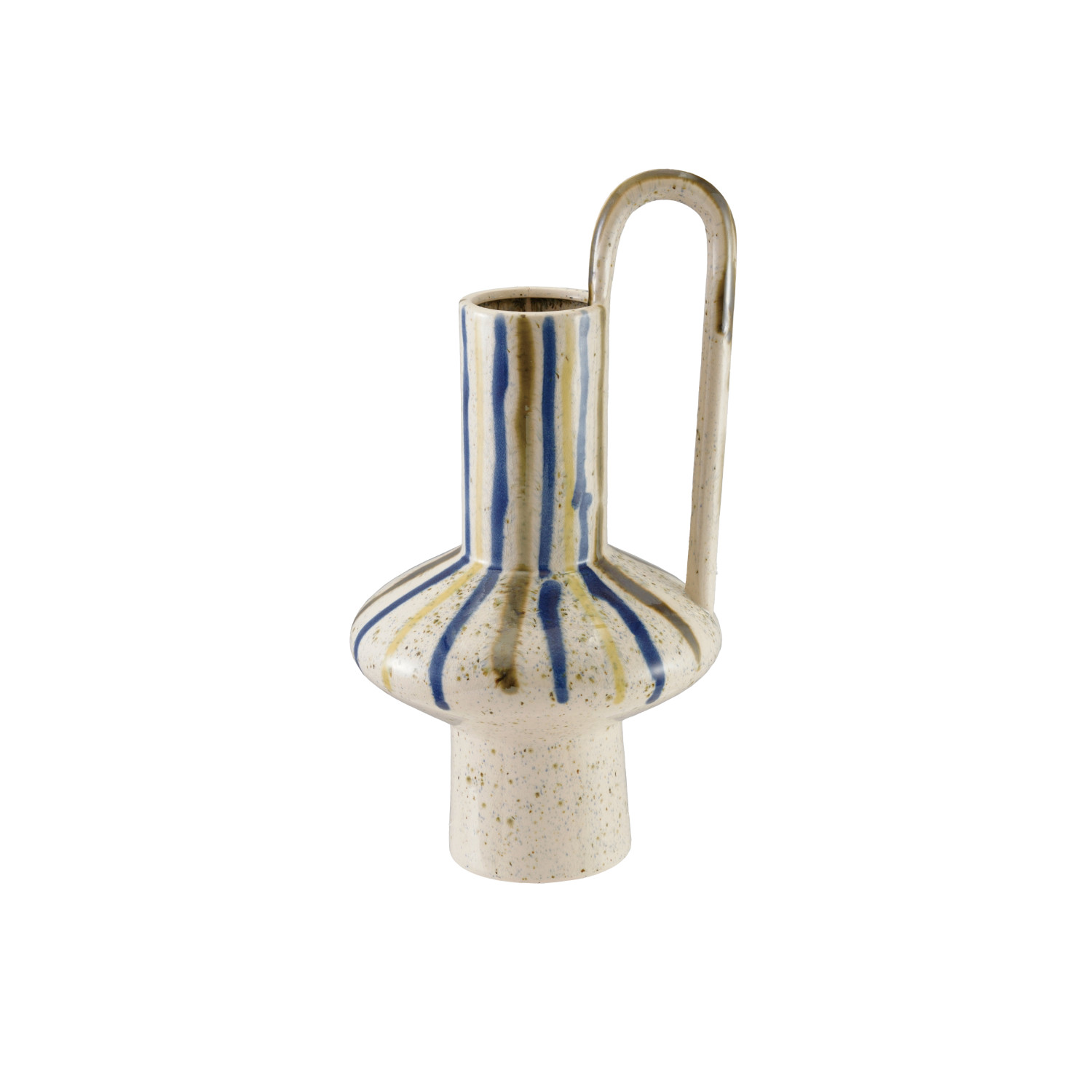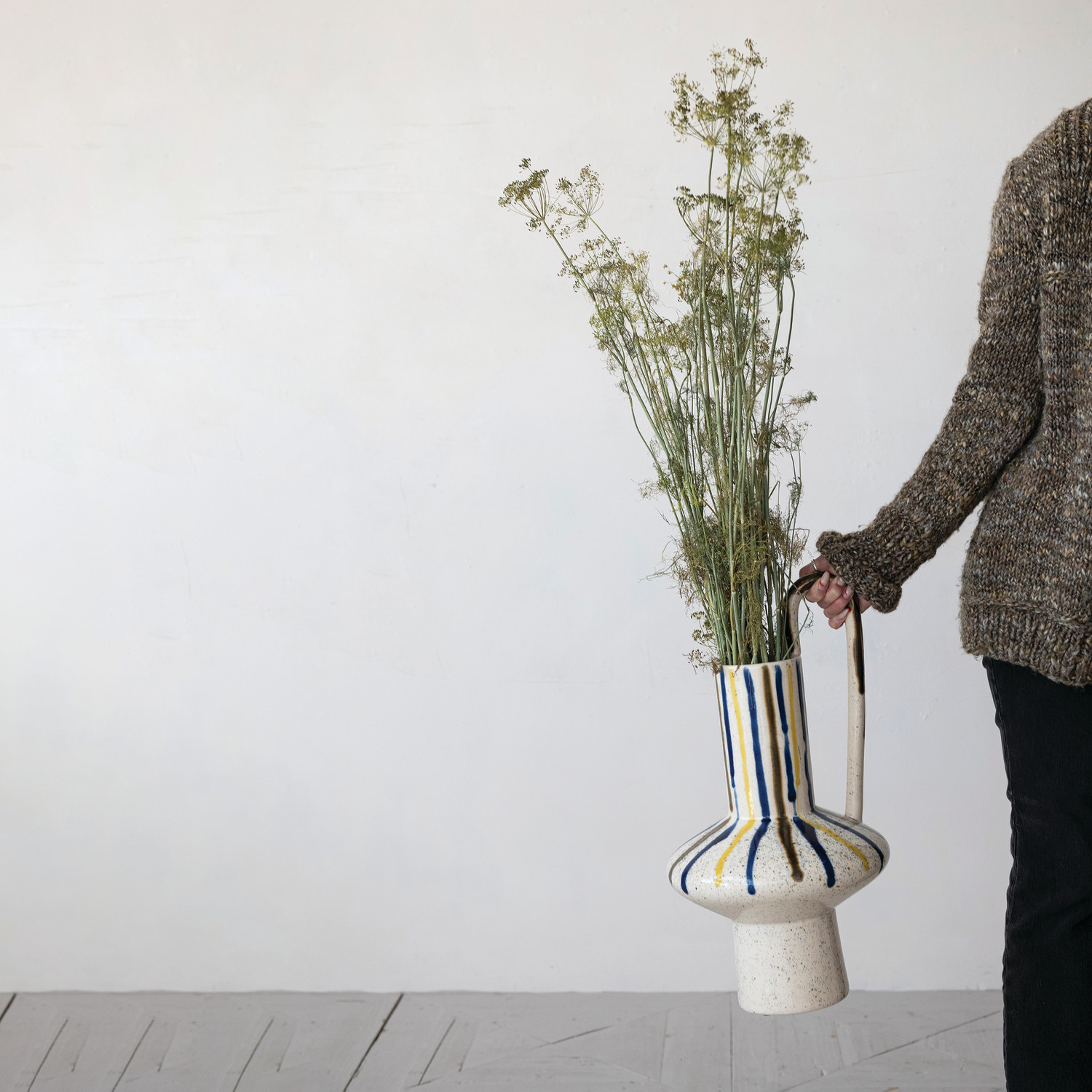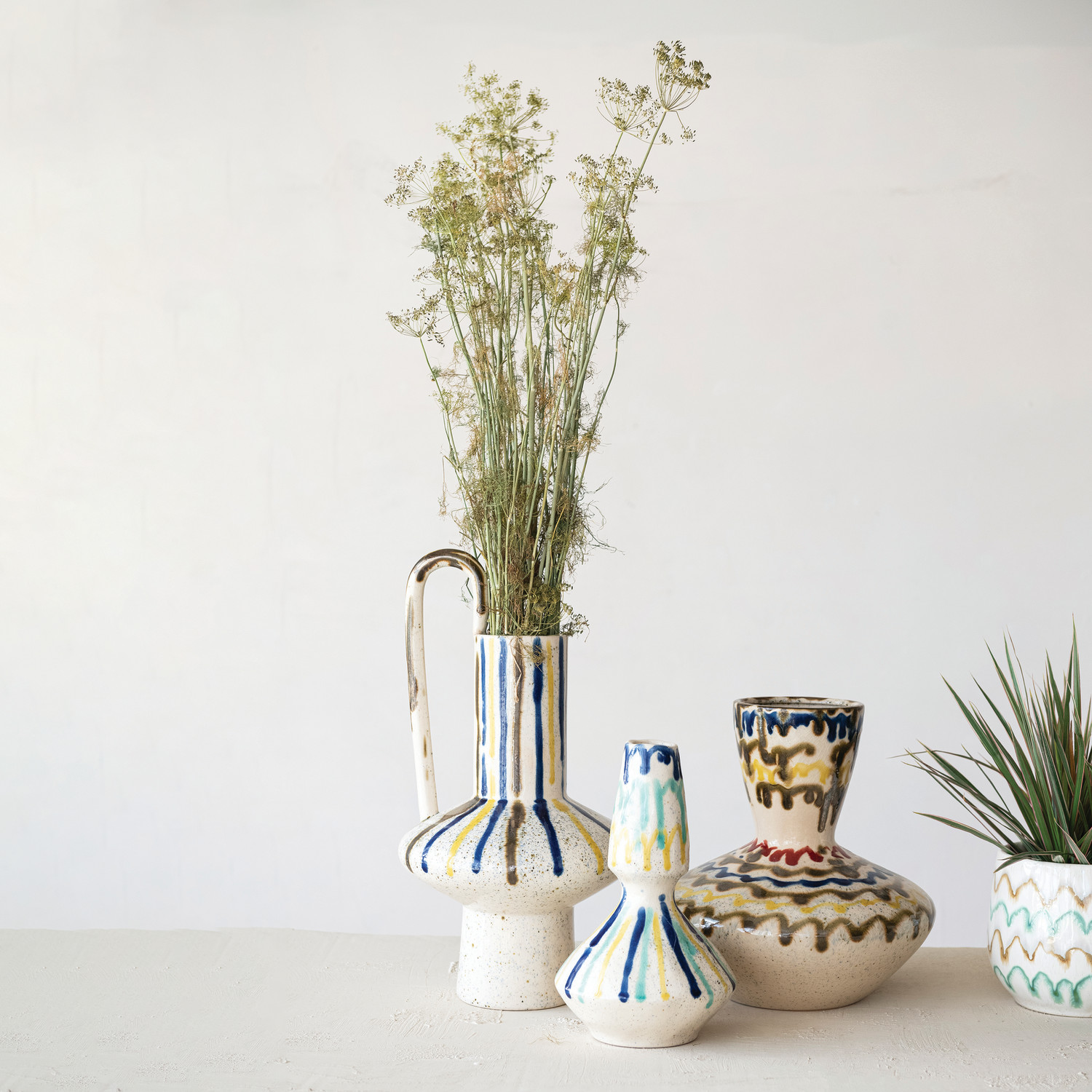 Hand-Painted Stoneware Vase with Handle, Reactive Crackle Glaze (Each One Will Vary)