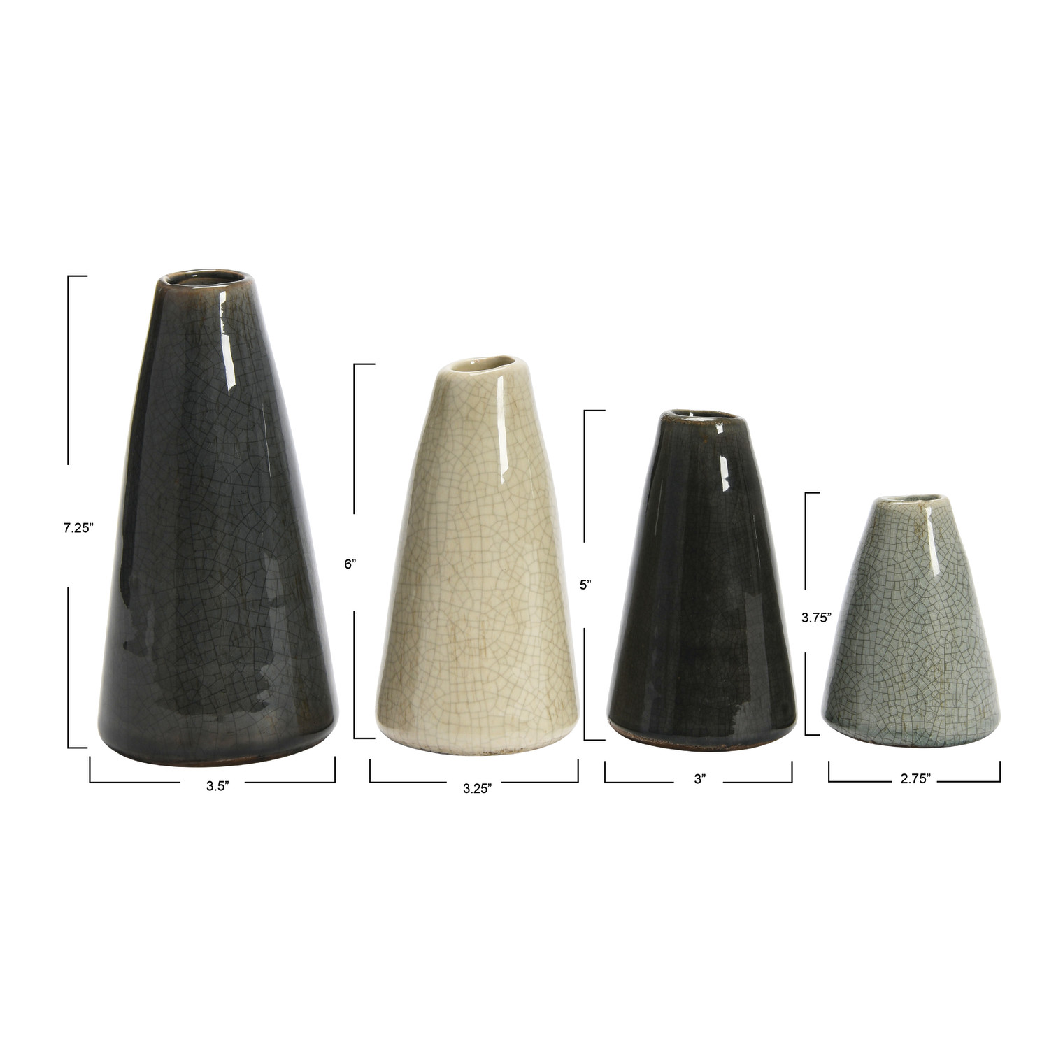 Catalog Name: S/4 3-1/2" Rnd x 7-3/4"H Conical Stoneware Vases