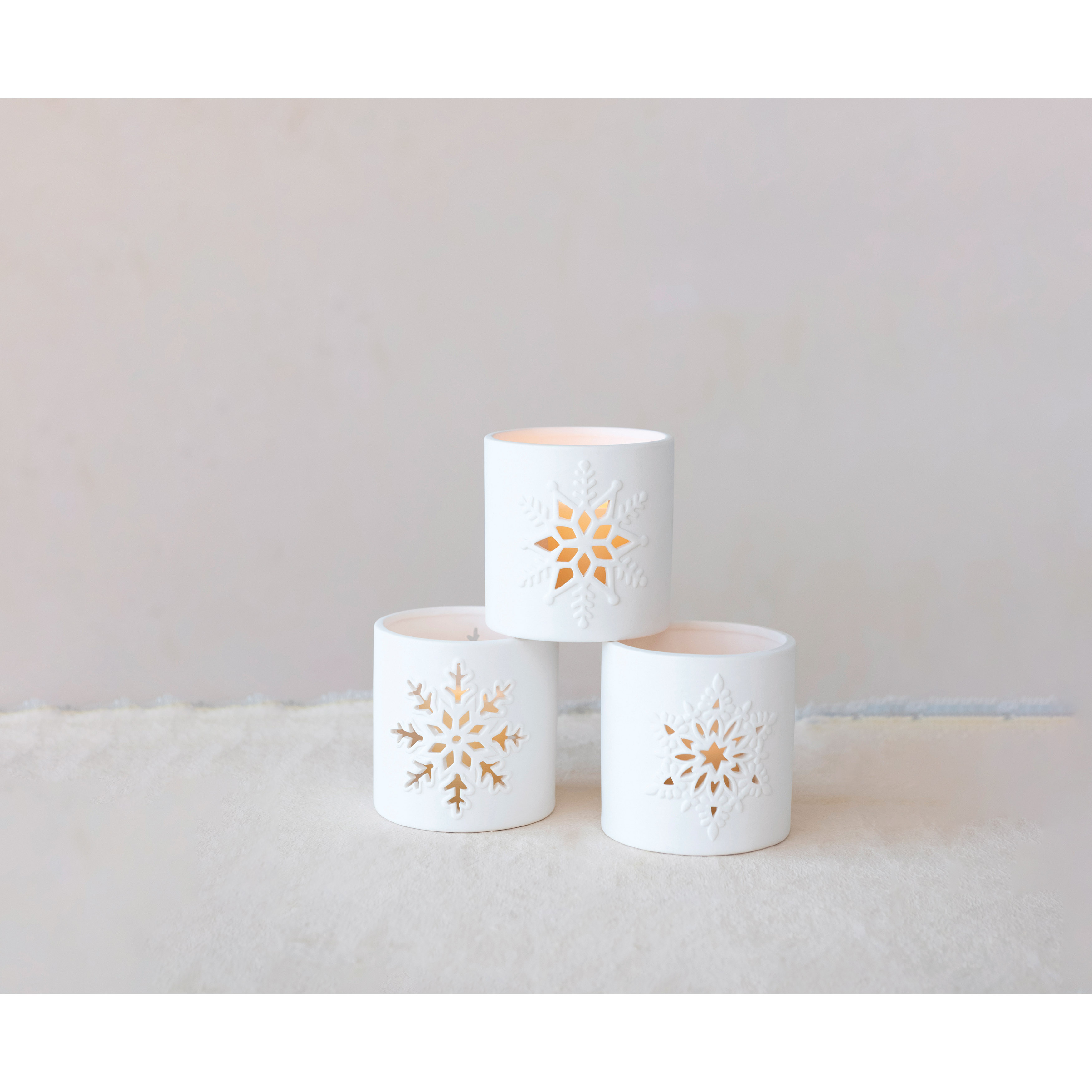 Stoneware Bisque Tealight Holder with Snowflake Cut-Out, 3 Styles