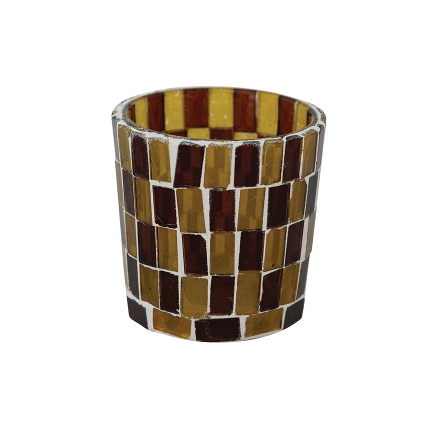 Recycled Glass Mosaic Tealight/Votive Holder, Amber Color & Brown