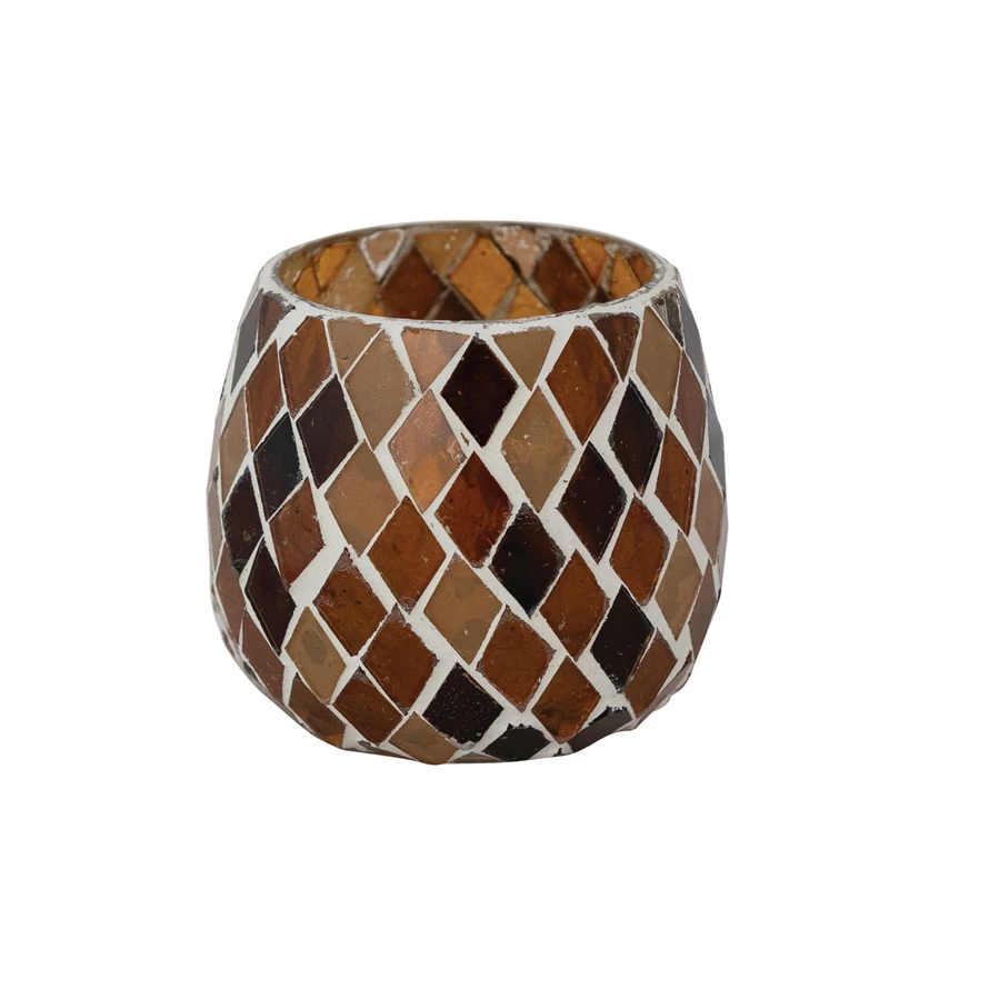 Recycled Glass Mosaic Tealight/Votive Holder, Amber Color & Brown