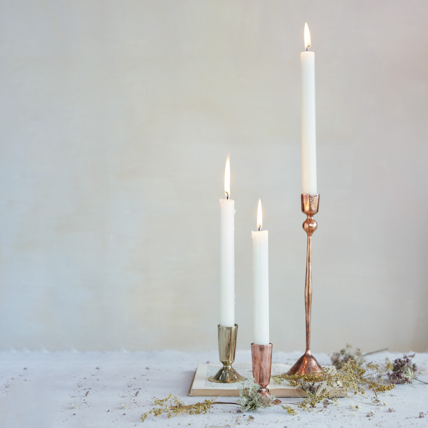 Catalog Name: 2" Round x 3"H Hand-Forged Iron Taper Holder, Copper Finish