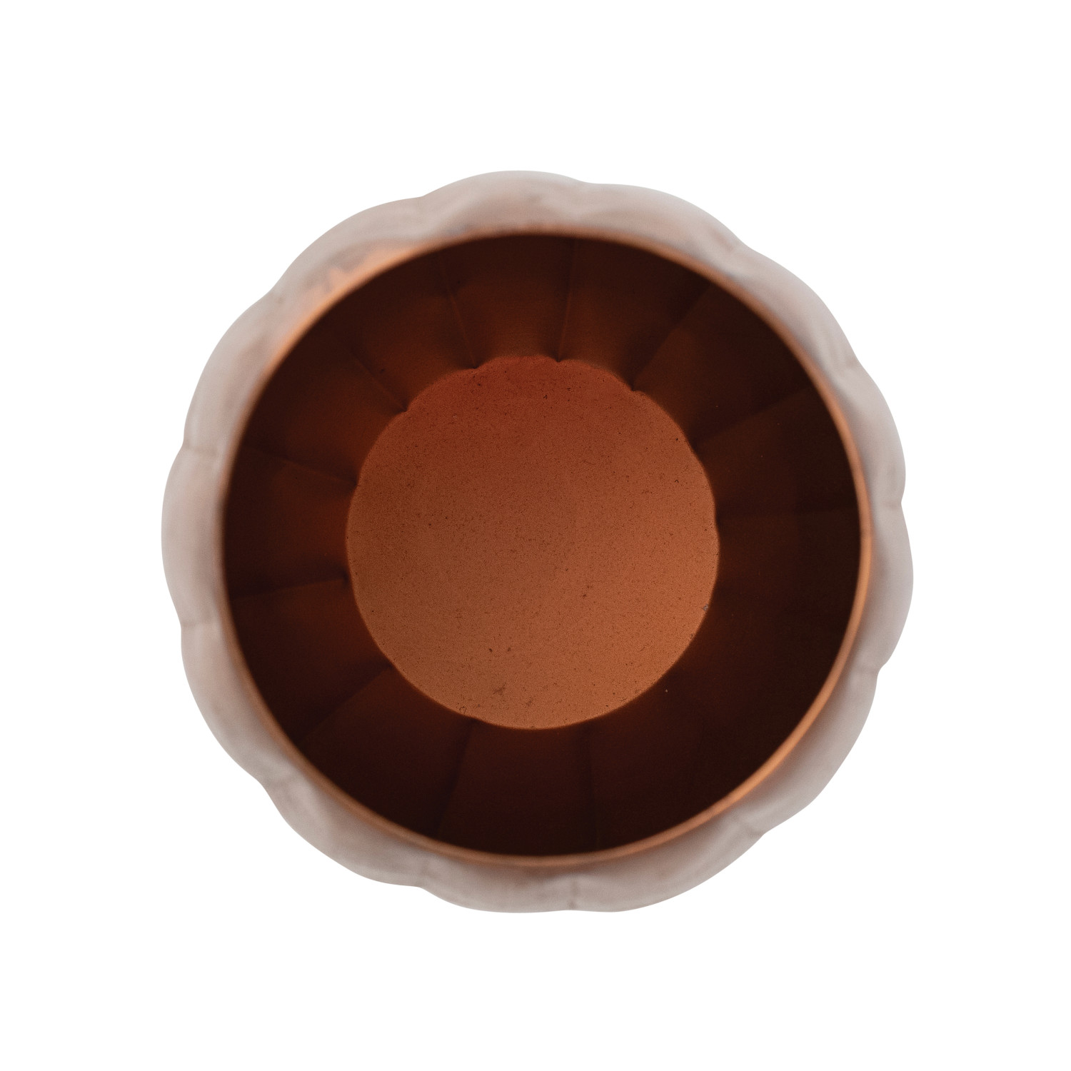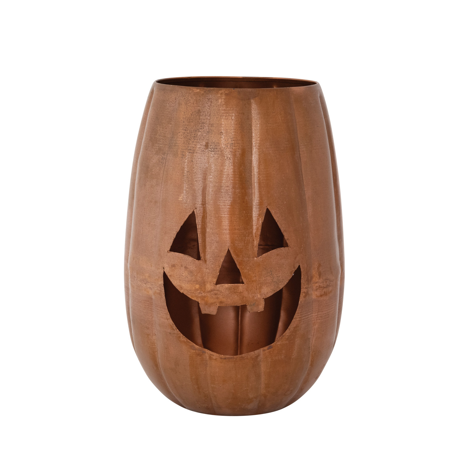 Catalog Name: 8-1/4" Round x 12"H Metal Jack-O-Lantern Candle Holder w/ Cut-Outs, Copper Finish