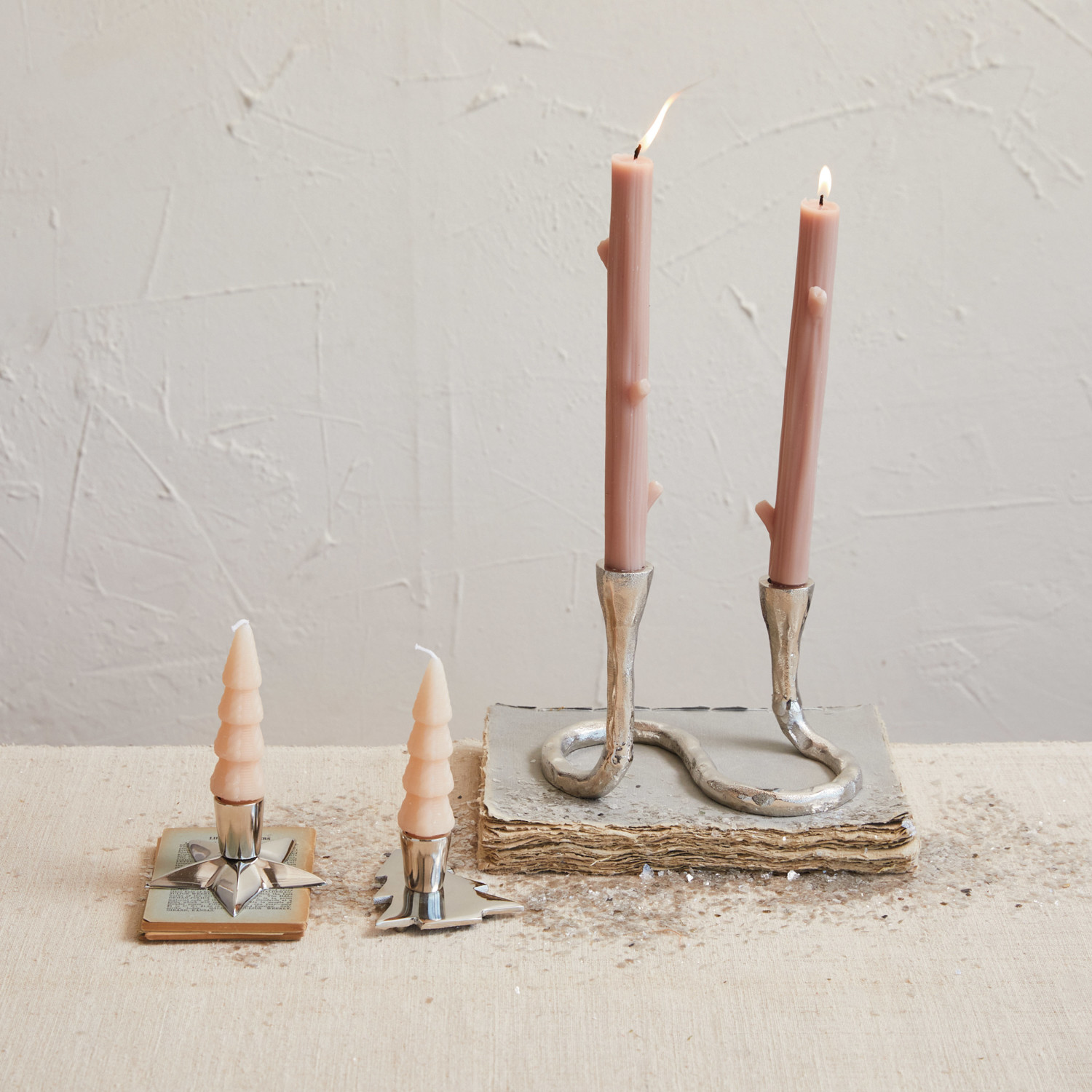 Electroplated Aluminum Tree/Star Taper Holder, Nickel Finish, 2 Styles