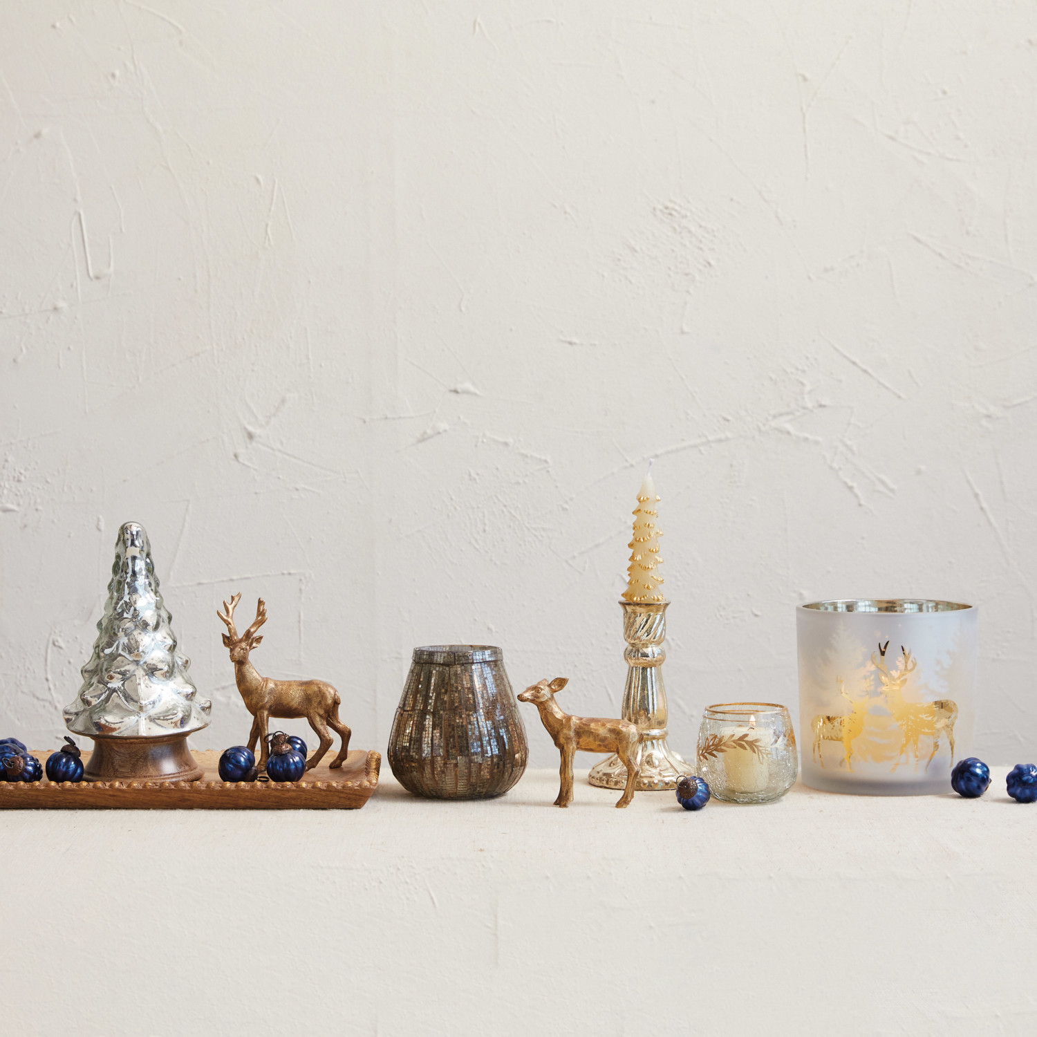 Recycled Glass Tealight/Votive Holder w/ Gold Finish Design (Each One Will Vary)