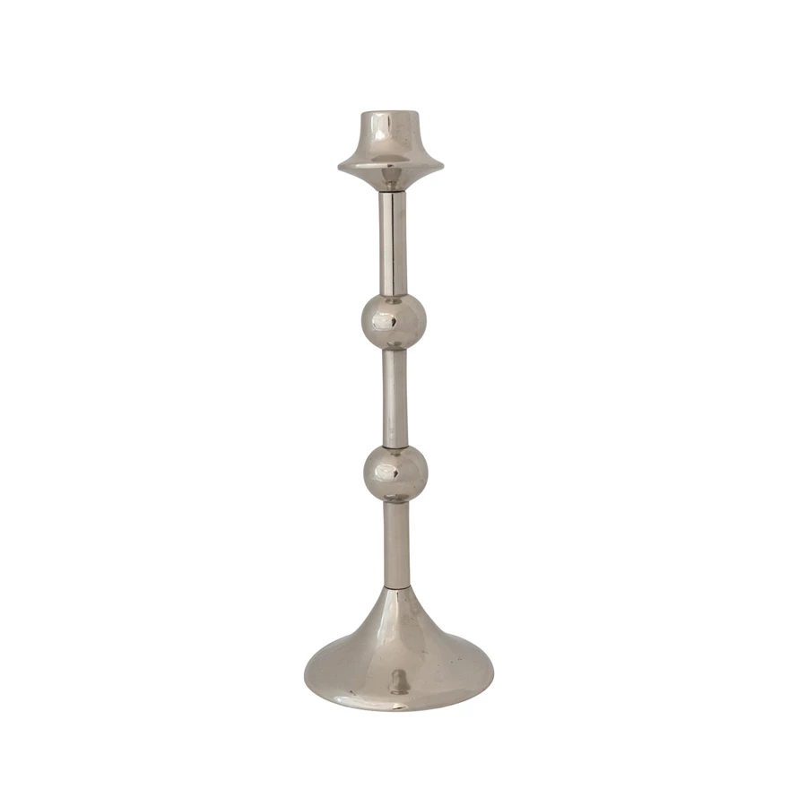 Cast Aluminum Taper Holder with Balls, Silver Finish