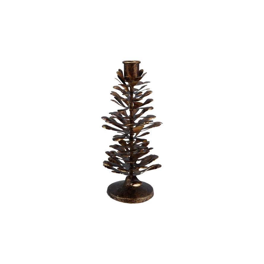 Metal Pinecone Shaped Taper Holder, Antique Gold Finish