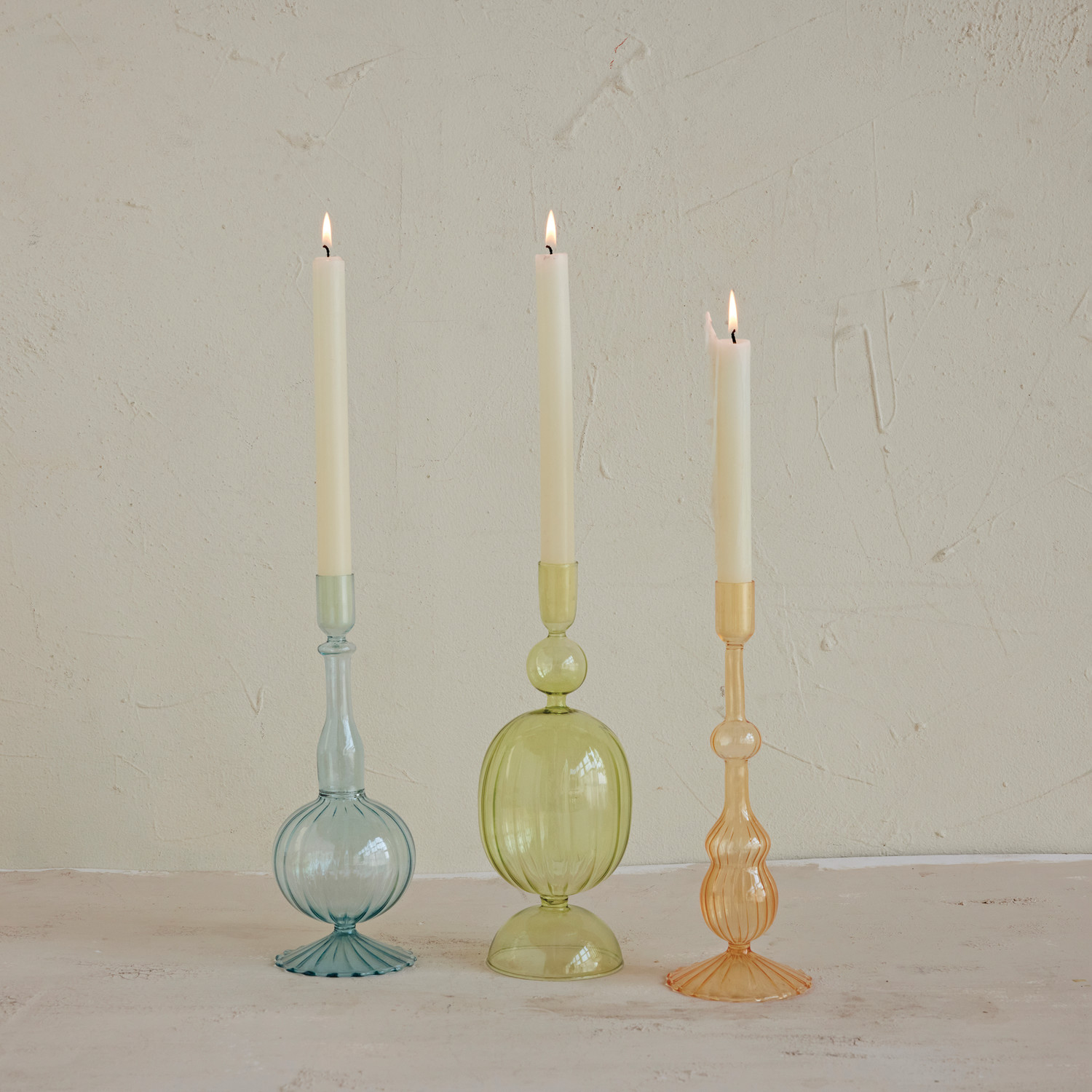 Approximately 10"H Glass Ribbed Taper Holder, 3 Styles