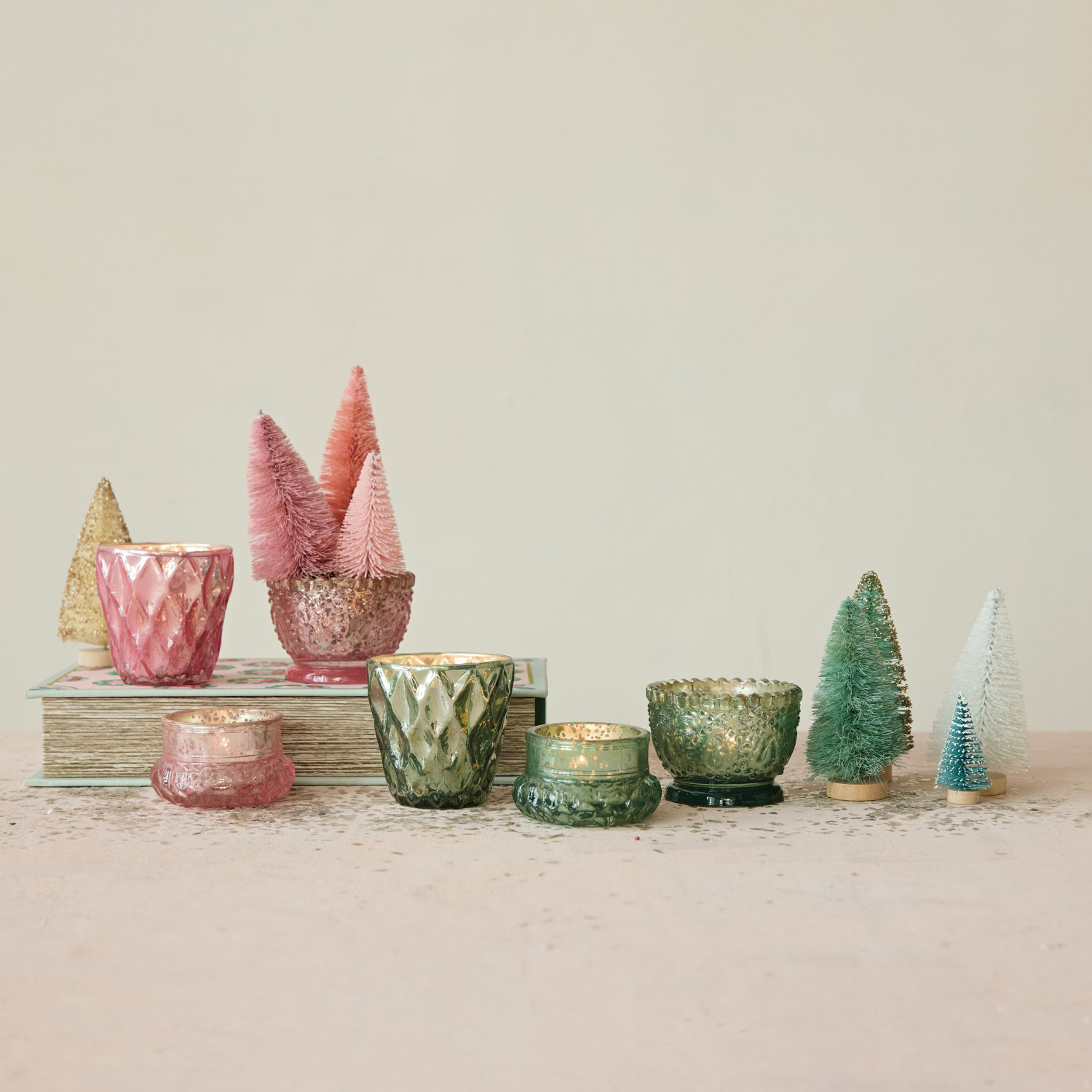 Embossed Mercury Glass Tealight/Votive Holder, Mint Color, 3 Styles