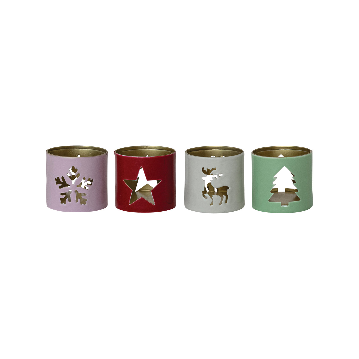 Enameled Metal Tealight Holder with Holiday Icon Cut-Outs, 4 Styles