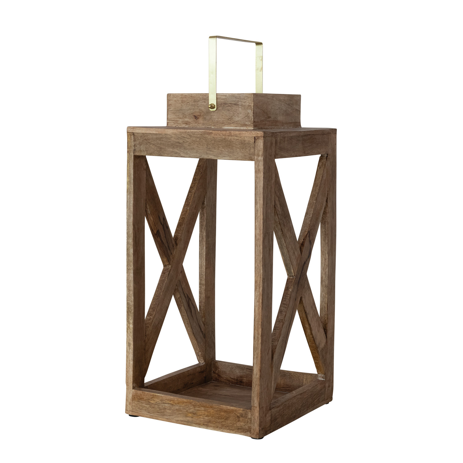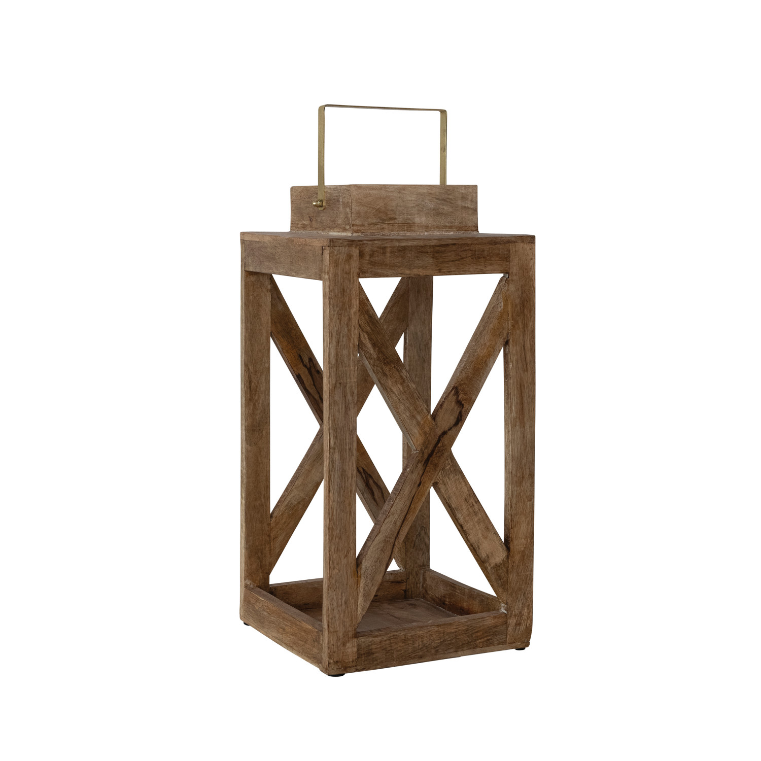 Mango Wood Lantern with Metal Handle, Natural & Gold Finish