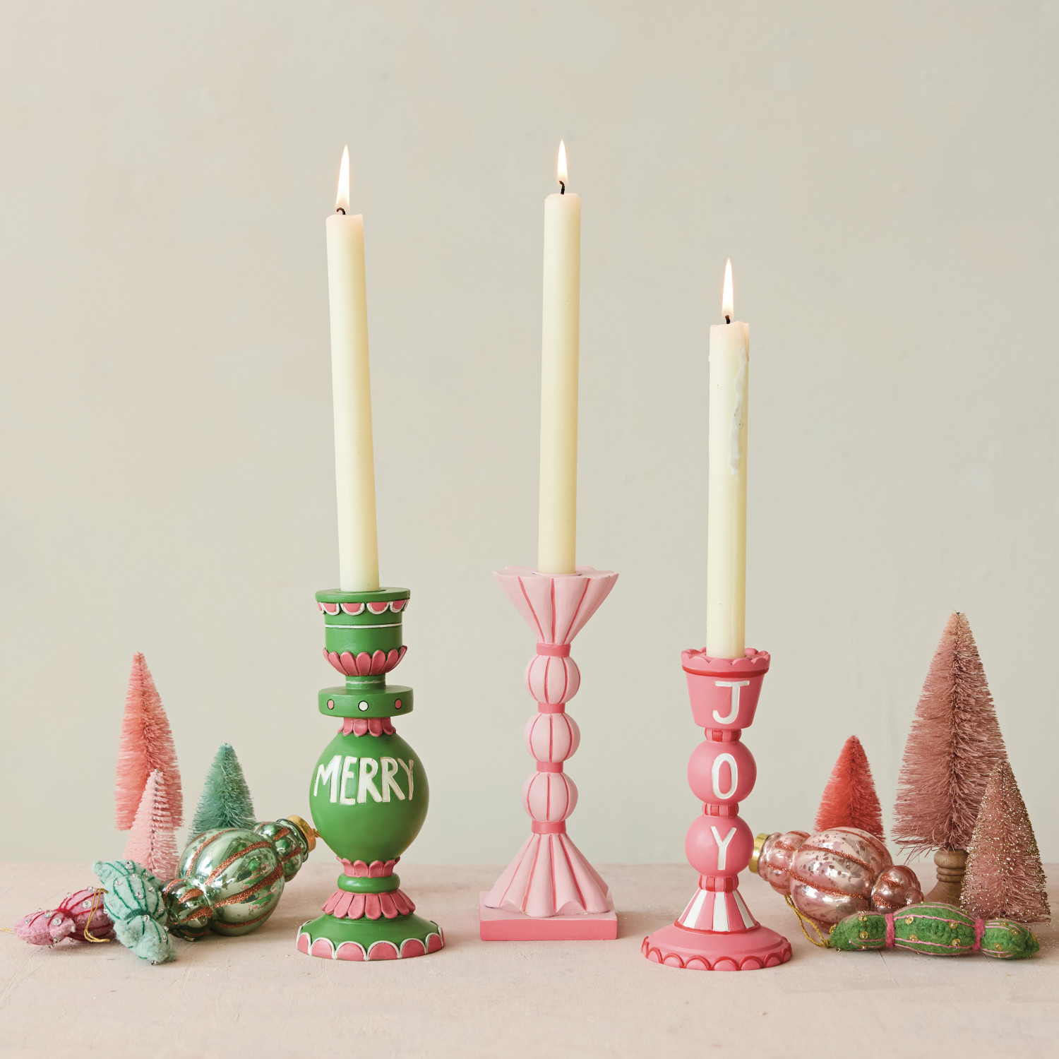 Resin Scalloped Taper Holder "Joy", Pink, Red & White ©