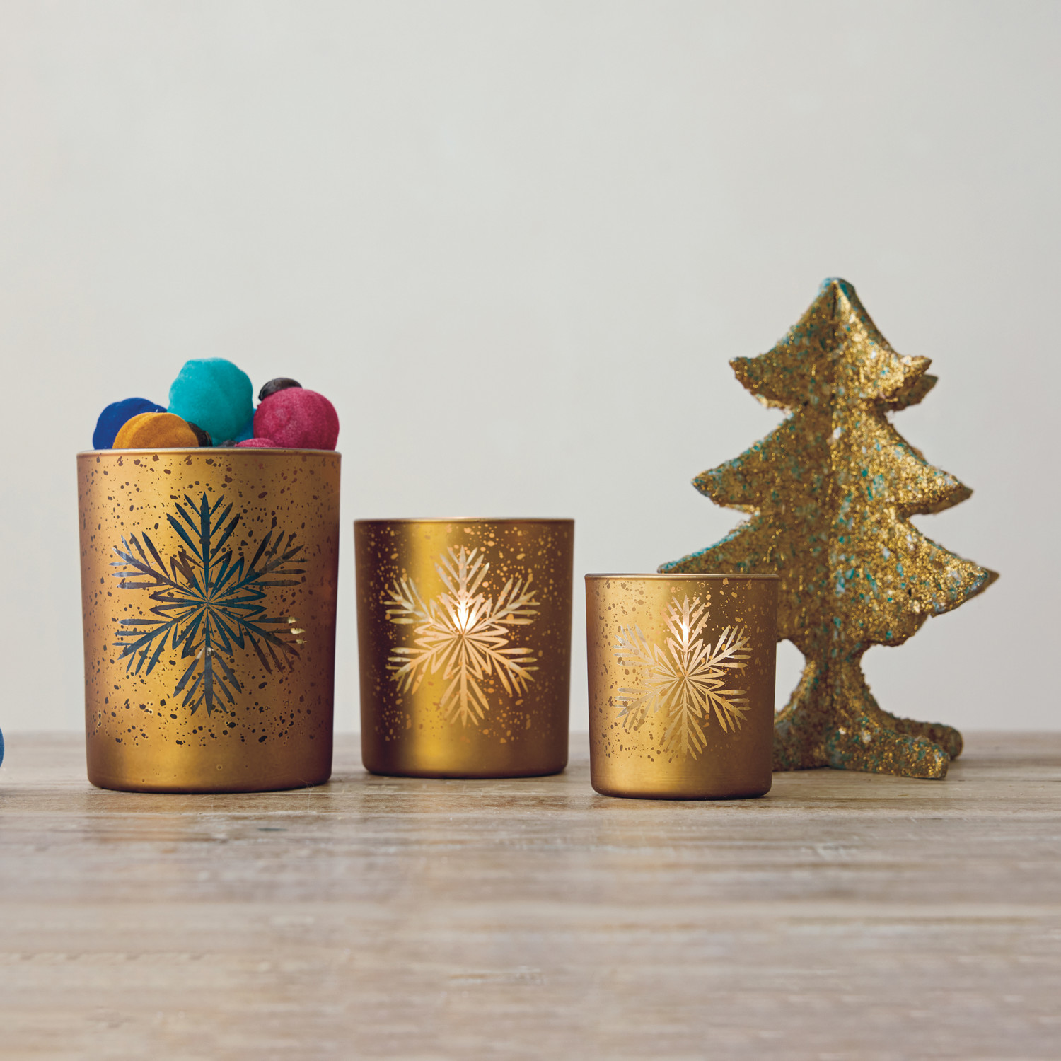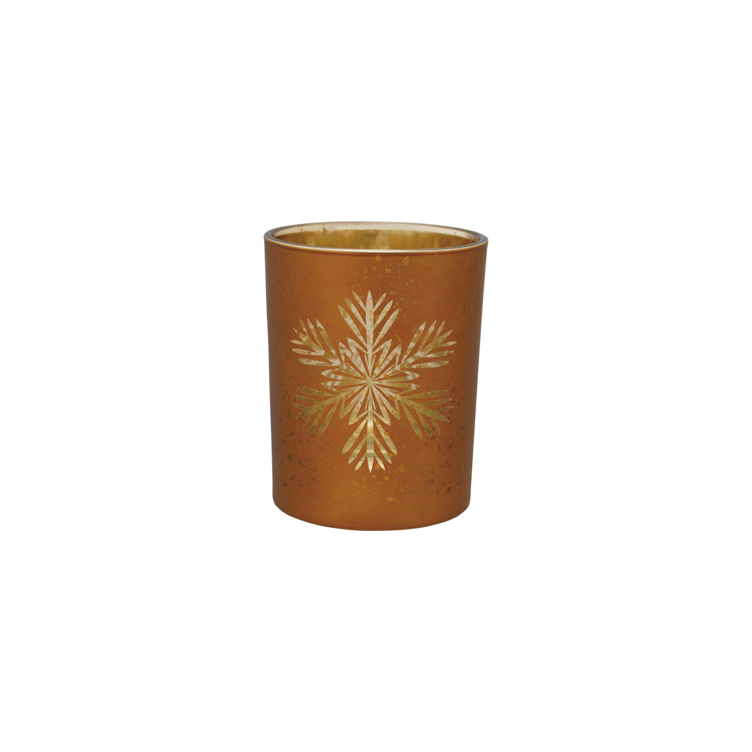 Mercury Glass Tealight/Votive Holder with Laser Etched Snowflake, Gold Finish