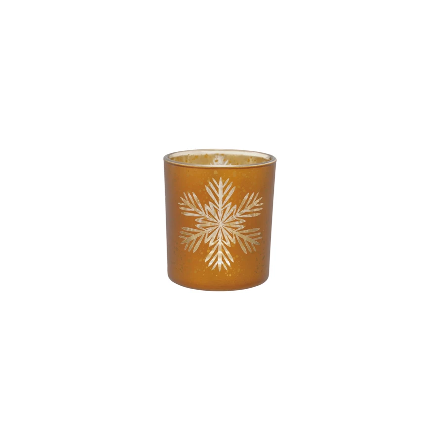 Mercury Glass Tealight/Votive Holder with Laser Etched Snowflake, Gold Finish