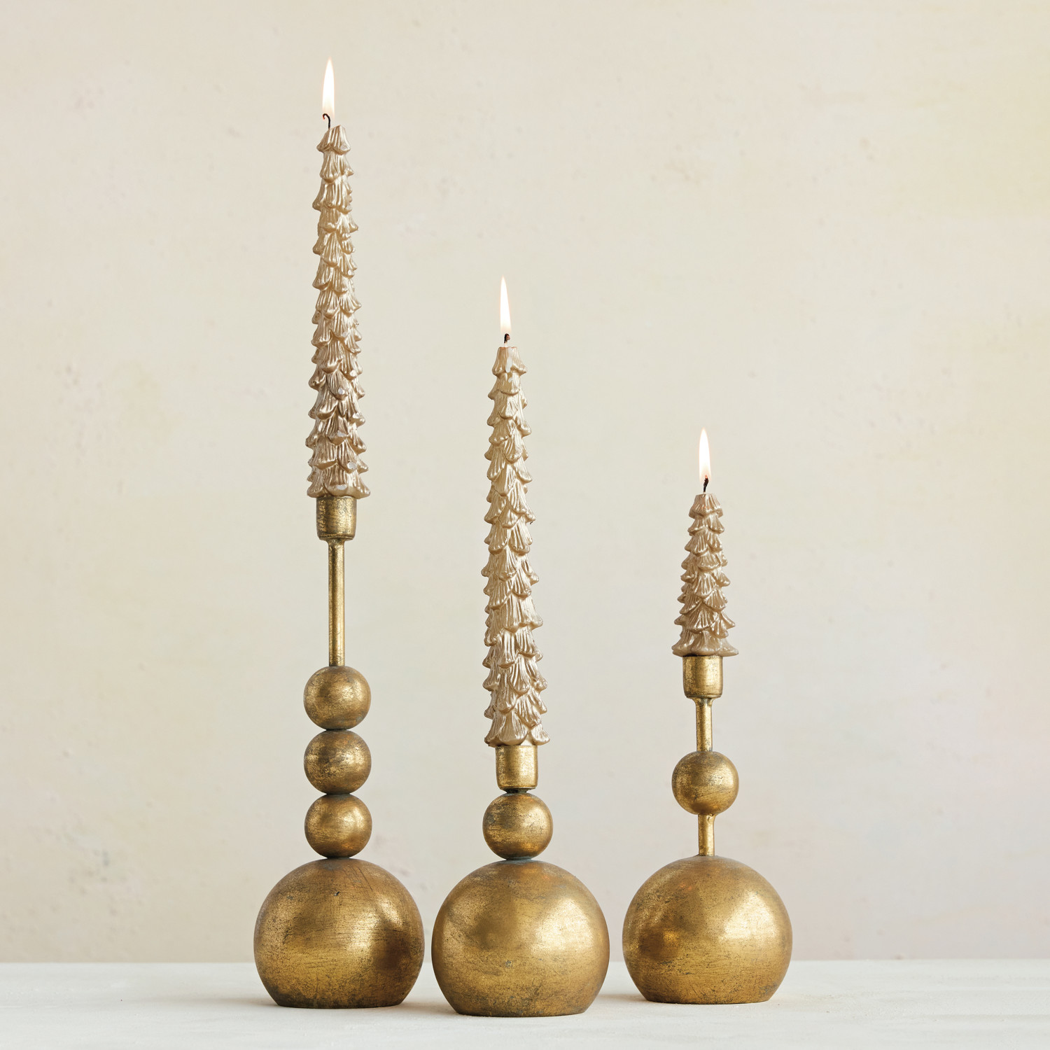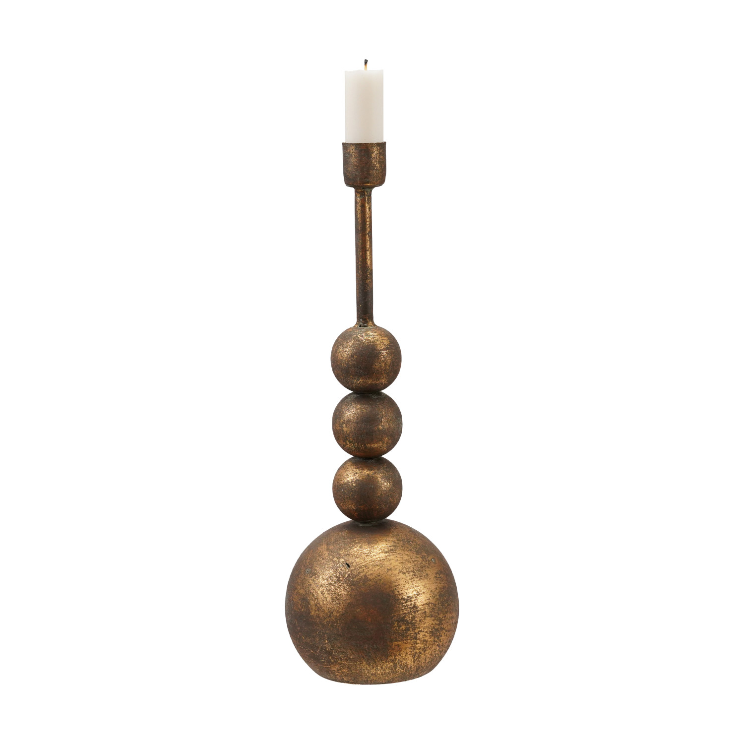 Catalog Name: 4" Round x 11-3/4"H Metal Ball Taper Holder, Antique Gold Finish