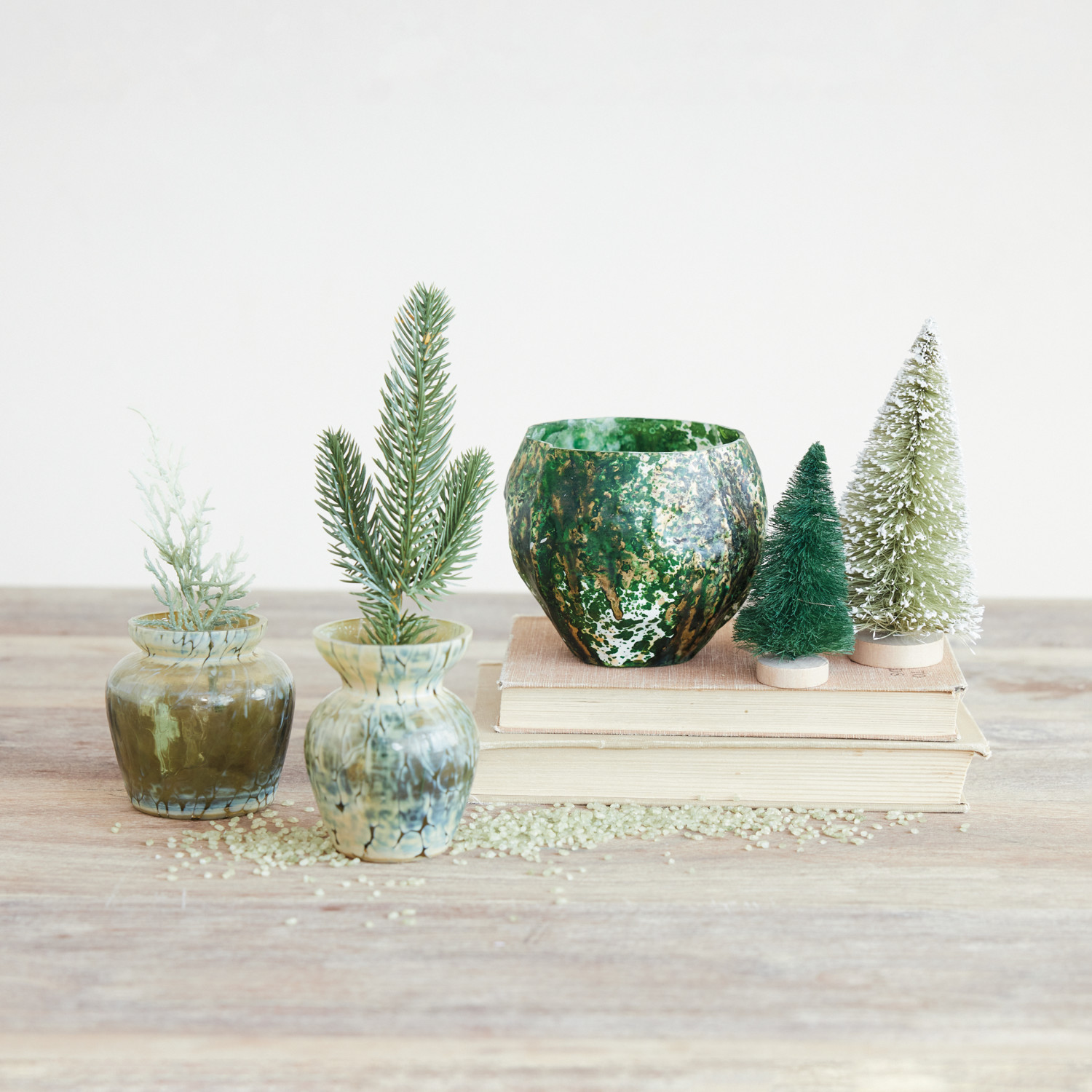 Hand-Blown Mercury Glass Tealight/Votive Holder, Distressed Green (Each One Will Vary)