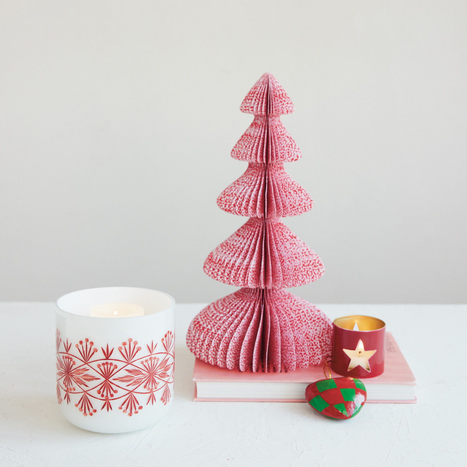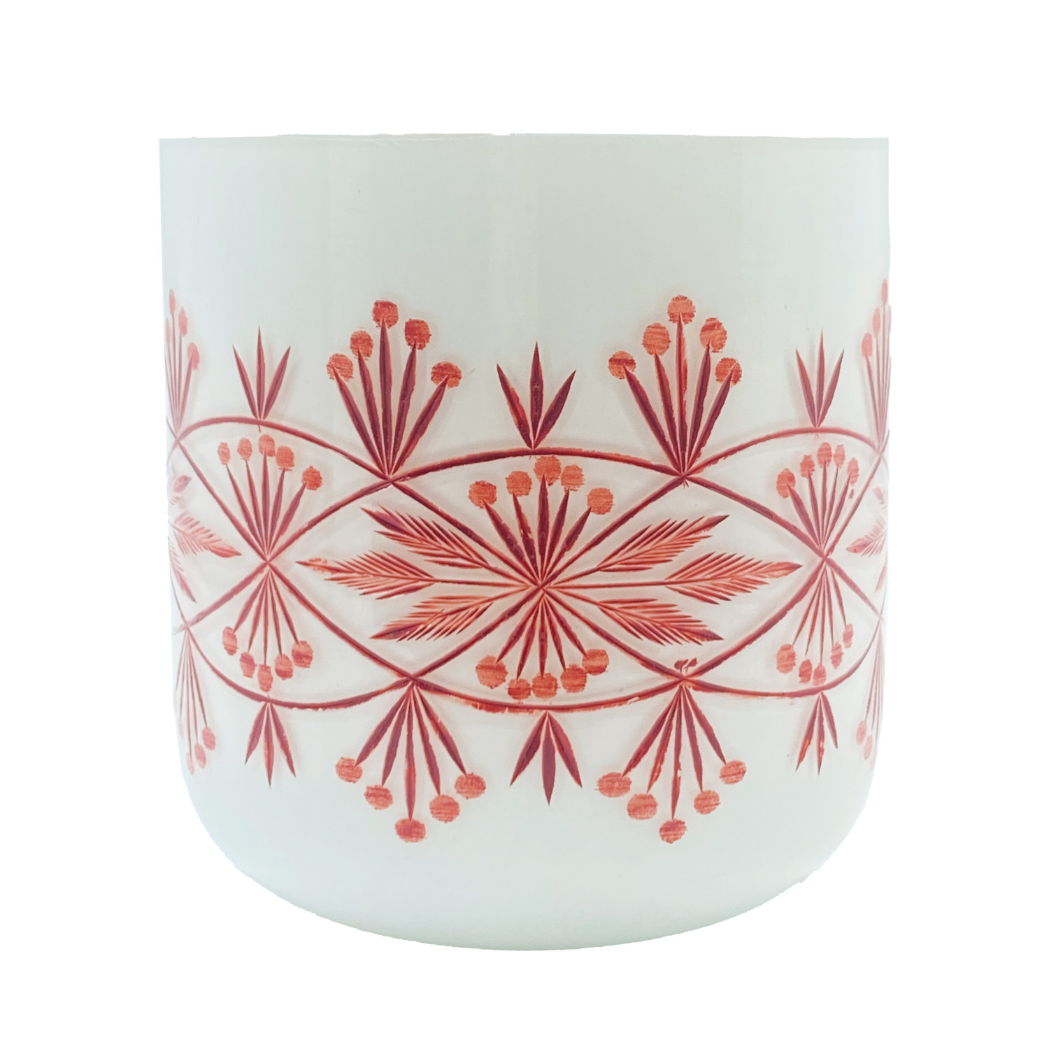 Hand-Blown Etched Glass Tealight/Votive Holder with Design, White & Red