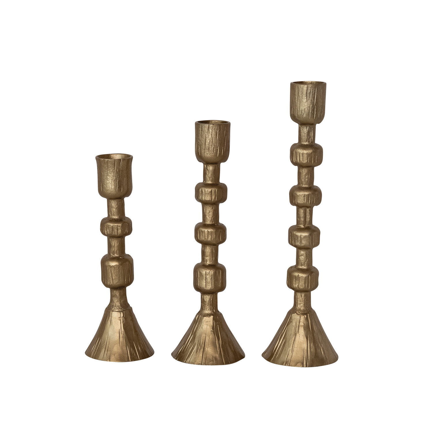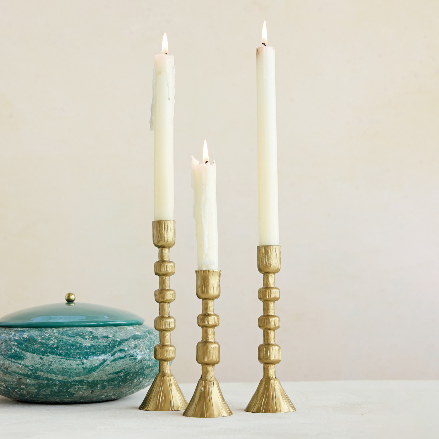 Hand-Forged Iron Taper Holders, Antique Gold Finish, Set of 3