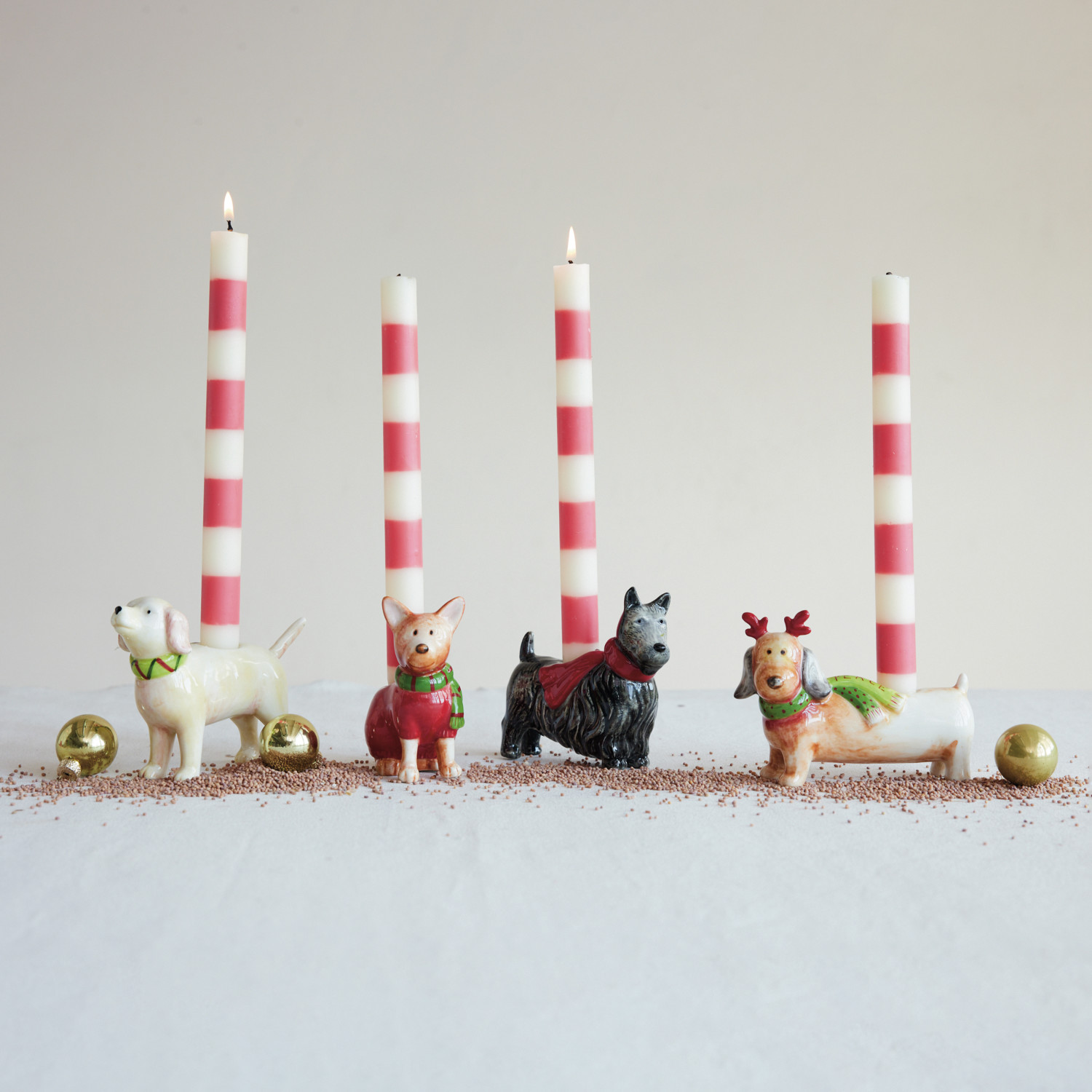 Hand-Painted Stoneware Dog Shaped Taper Holder with Scarf & Saying, 4 Styles ©