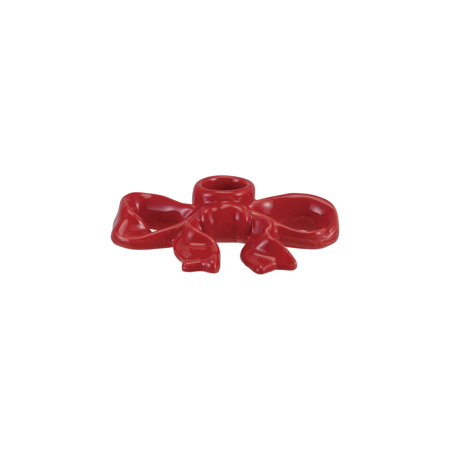 Stoneware Bow Shaped Taper Holder, Red